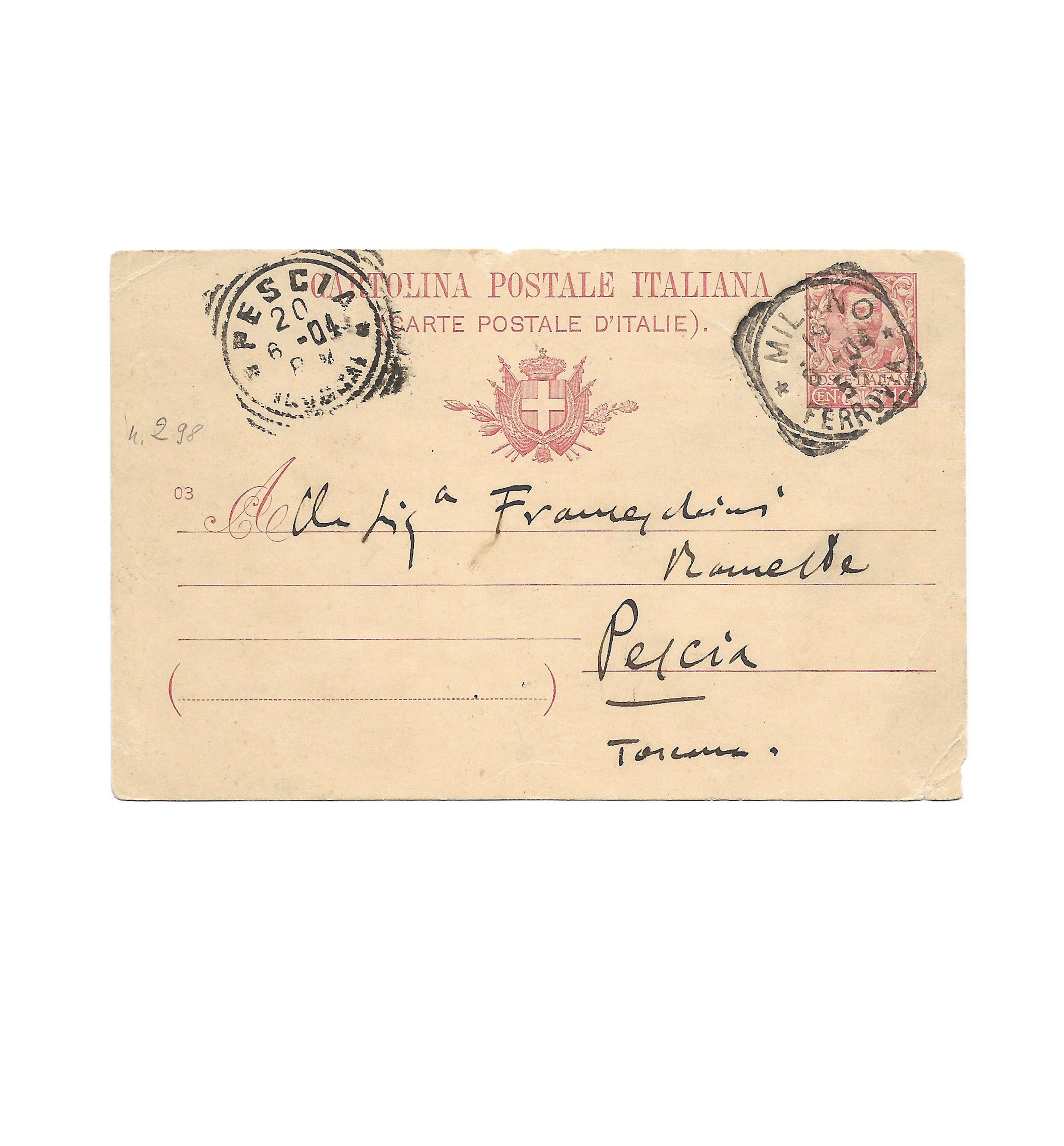 This card is sent to his sister Ramelde Franceschini, Puccini says that he is not able to help her for what she needs.