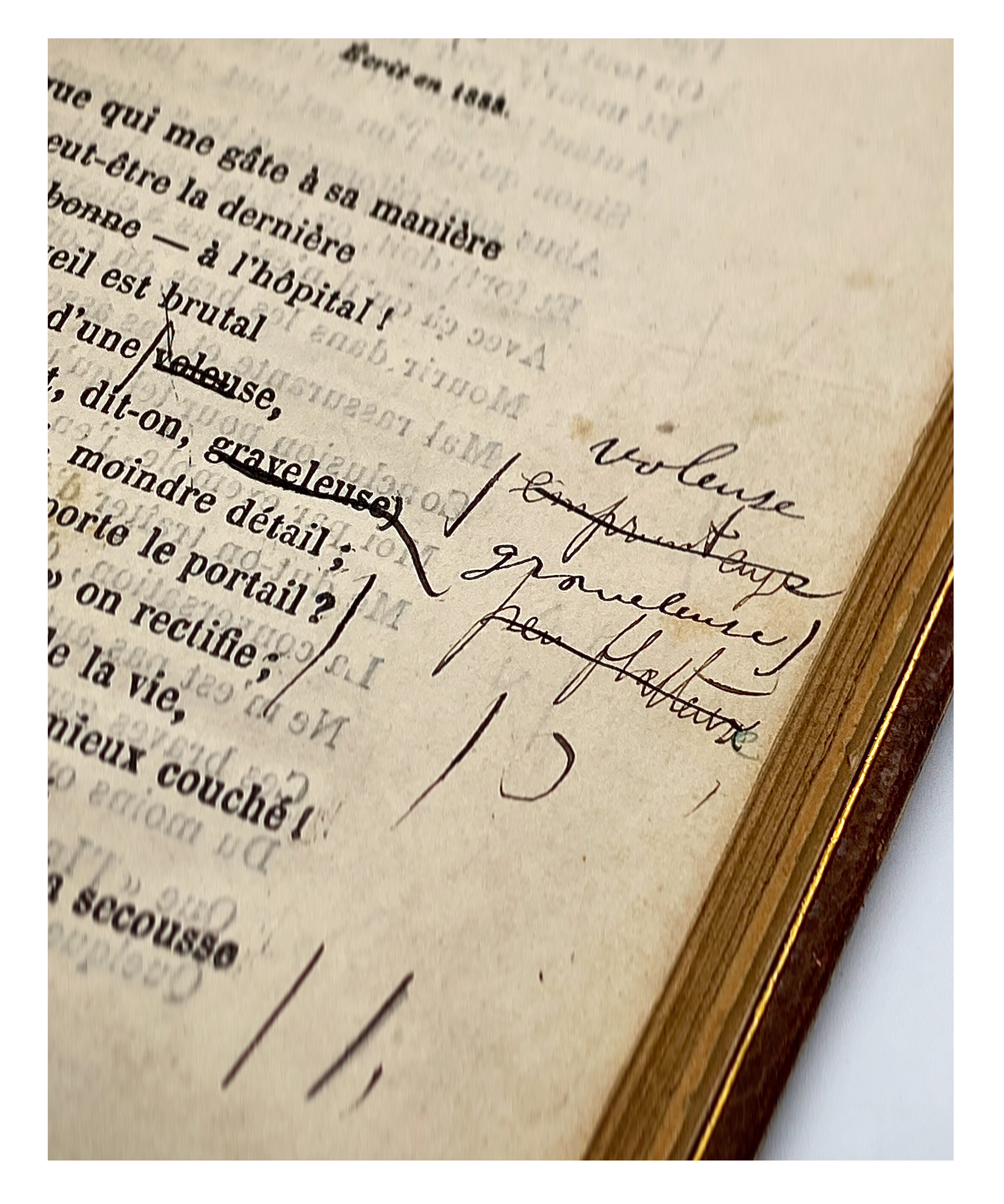Abundant autograph corrections and indications for the printer of Verlaine’s hand.
