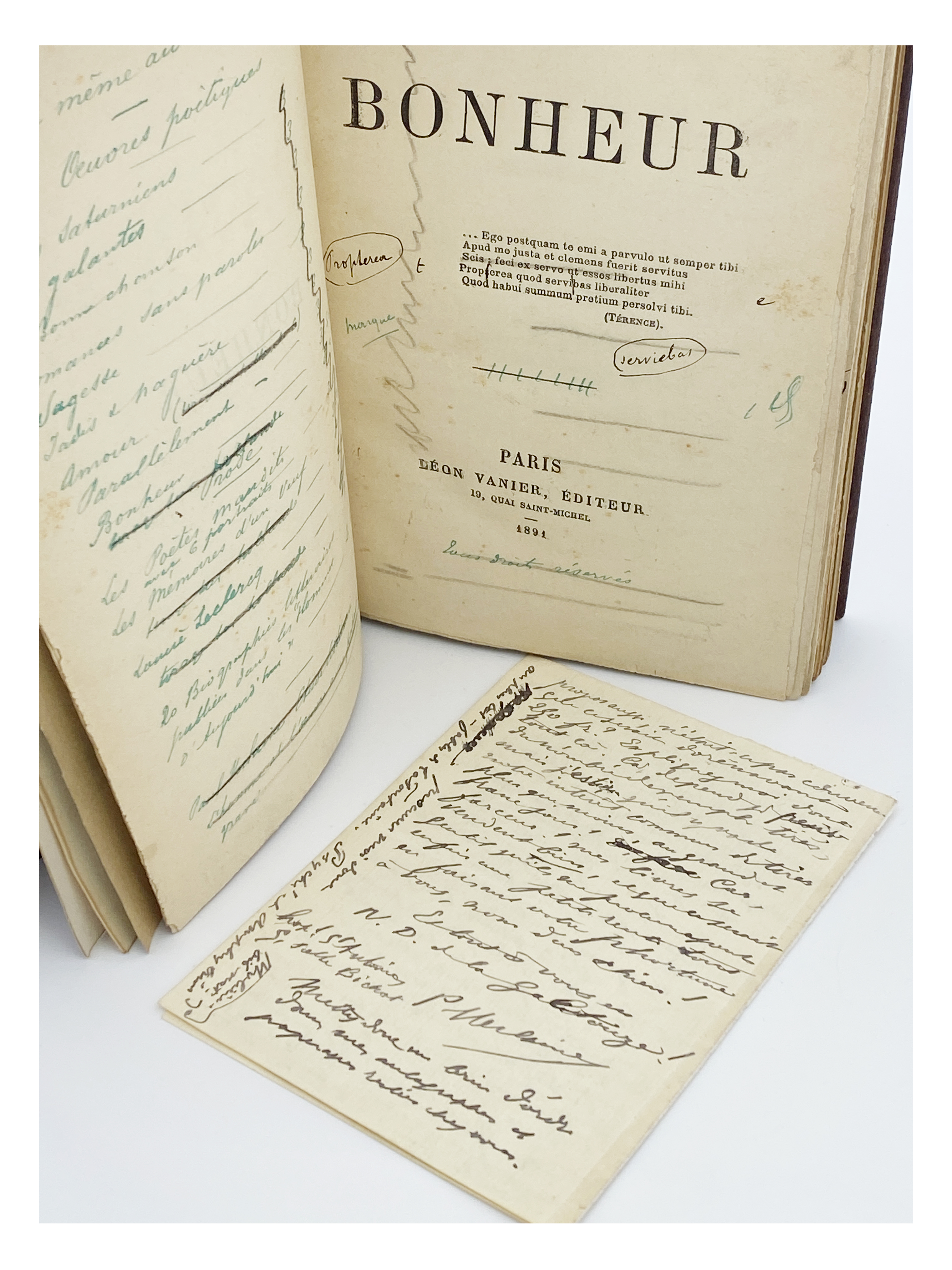 Corrected proofs for Bonheur by Paul Verlaine, accompanied with an autograph letter signed about the poem collection