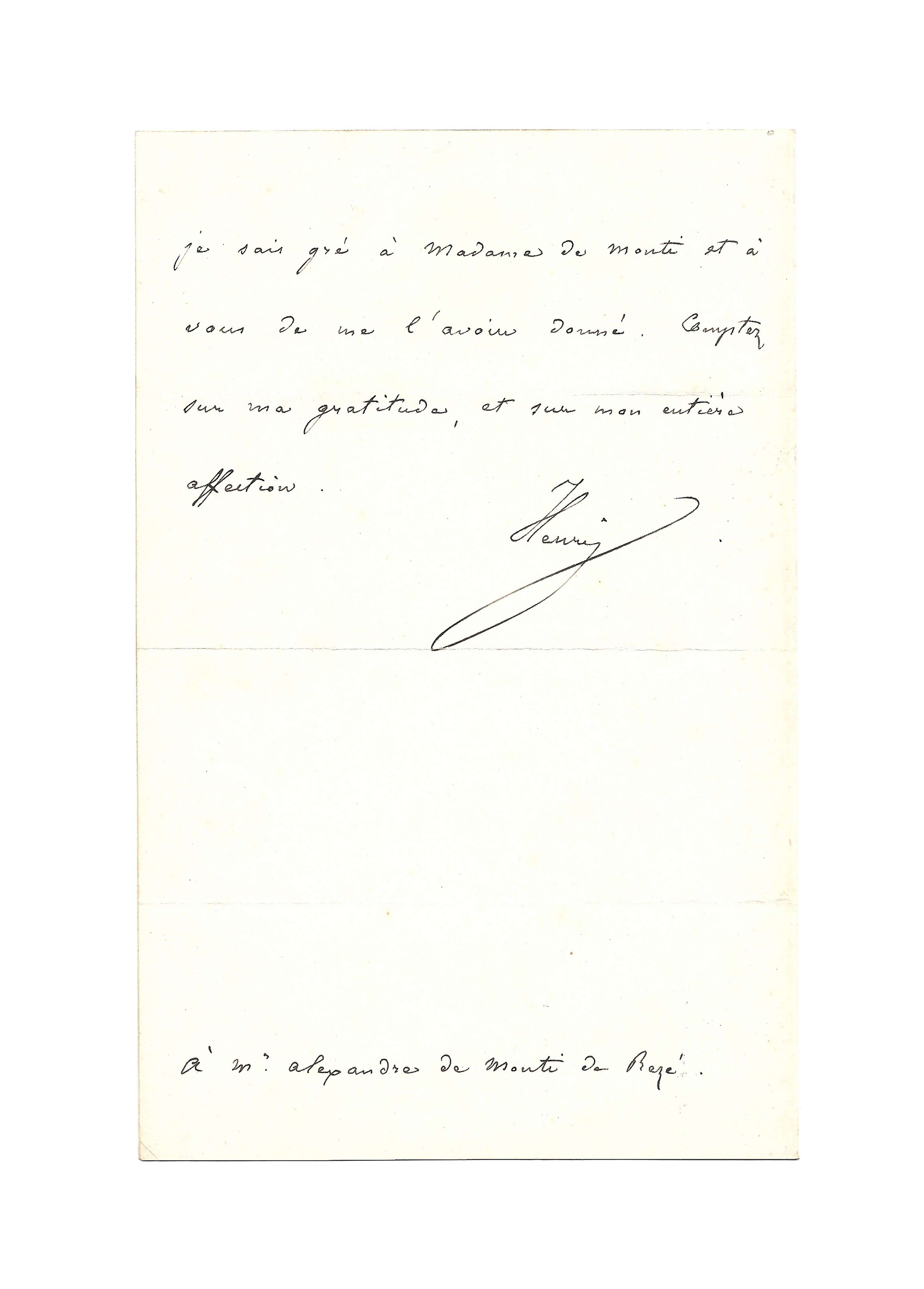 Two autograph letters signed « Henri » to Alexandre de Monti de Rezé