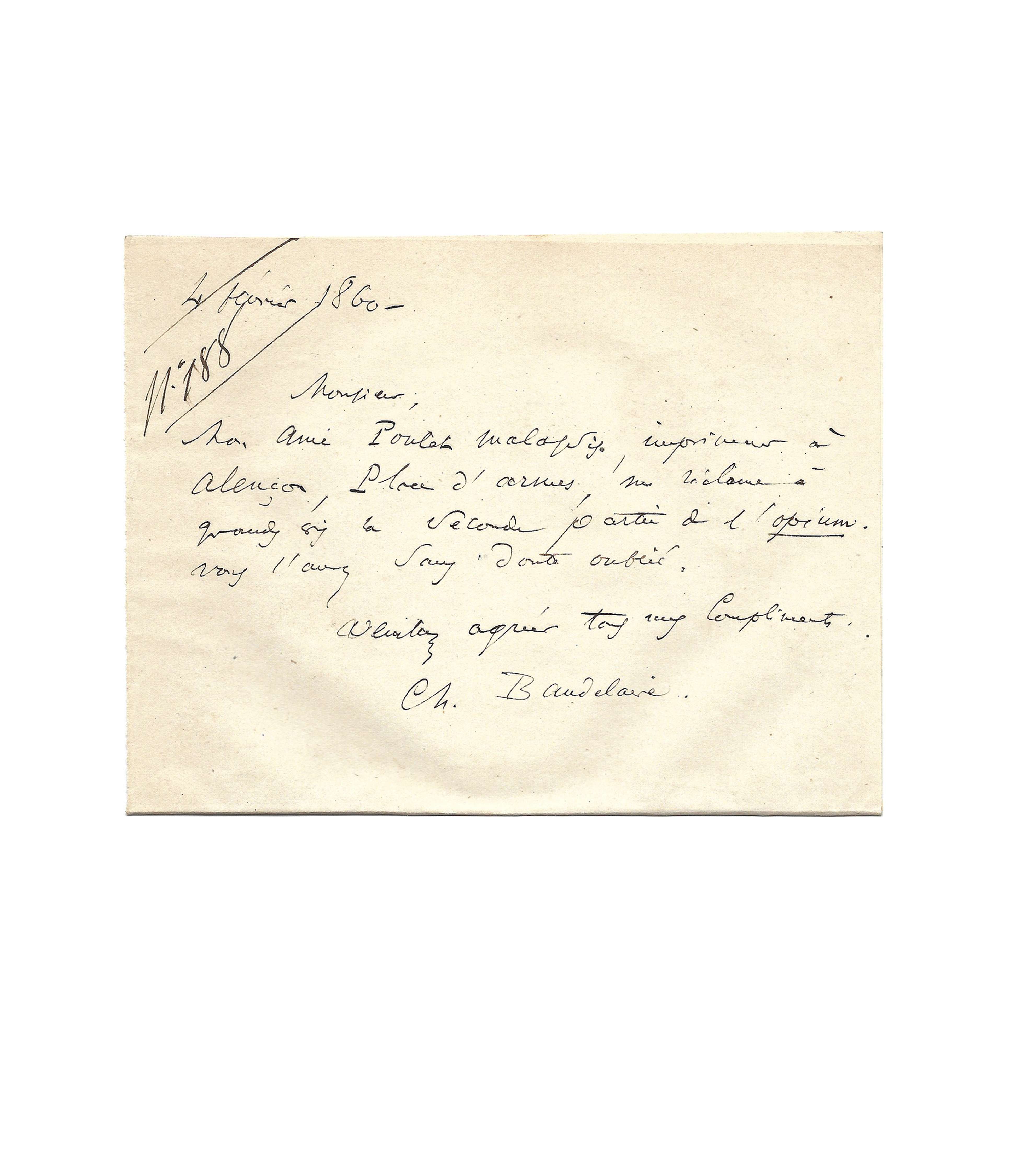 Autograph letter signed “Ch. Baudelaire” to F. Bichet