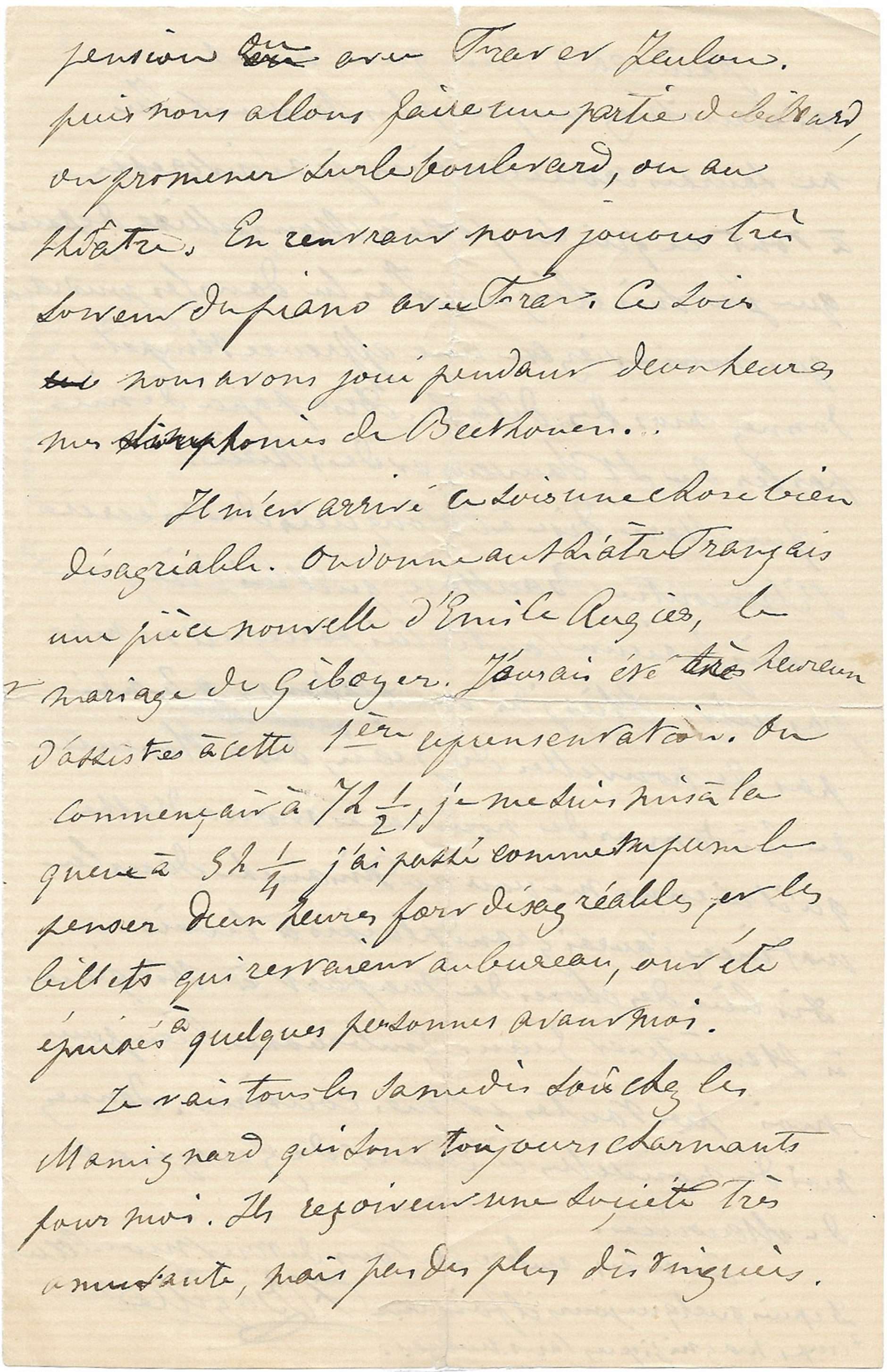 Je vais tous les samedis soir chez les Mamignard [ancêtres toulousains du peintre] qui sont toujours charmants pour moi. Ils reçoivent une société très amusante, mais pas des plus distinguées.