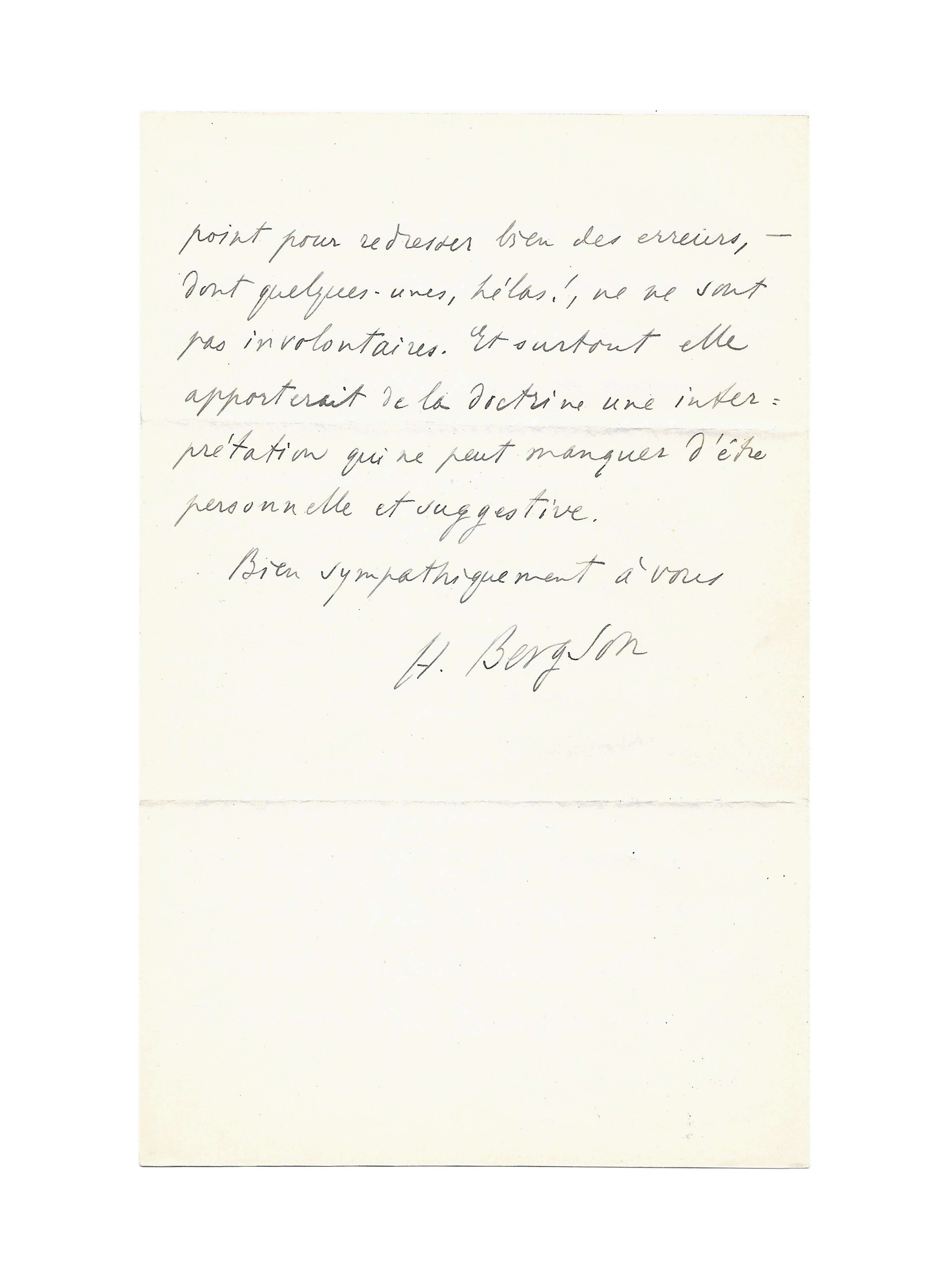 Long and remarkable letter of Bergson about philosophy, religion and art