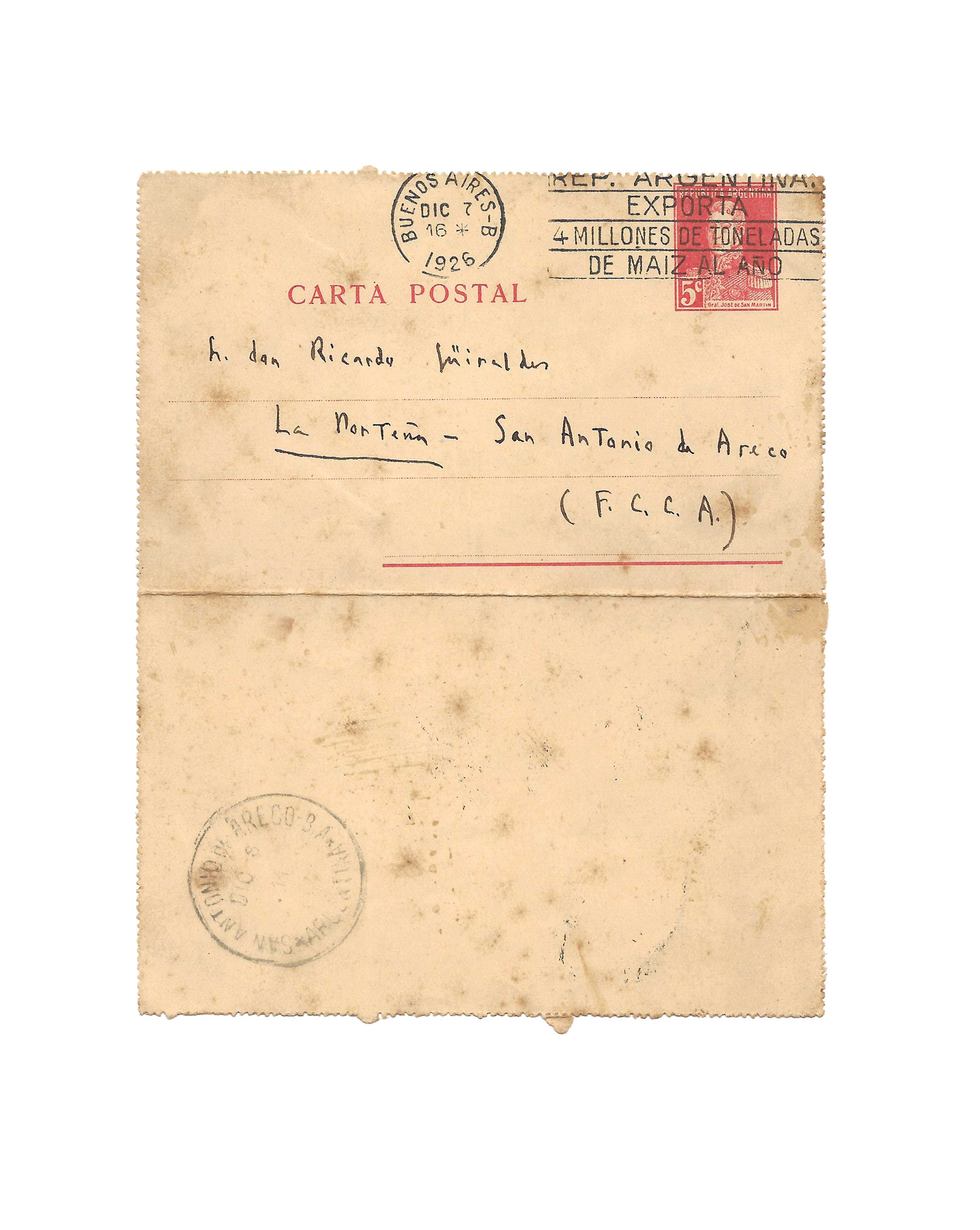 [Buenos Aires, 7th December 1926], 1 p. small in-8°