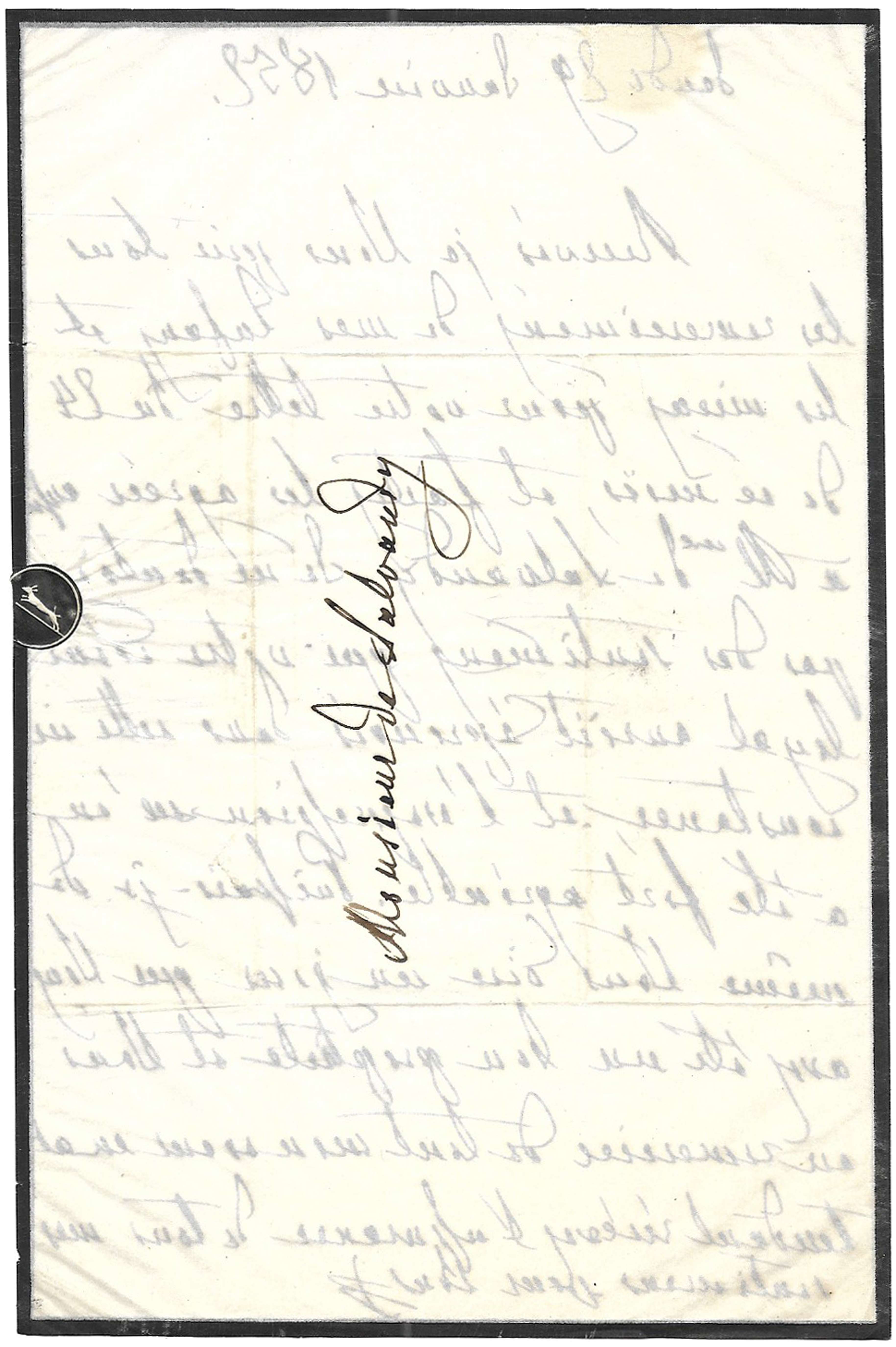 [Claremont, United Kingdom], 29 Jan. 1852, 1 p. in-8°