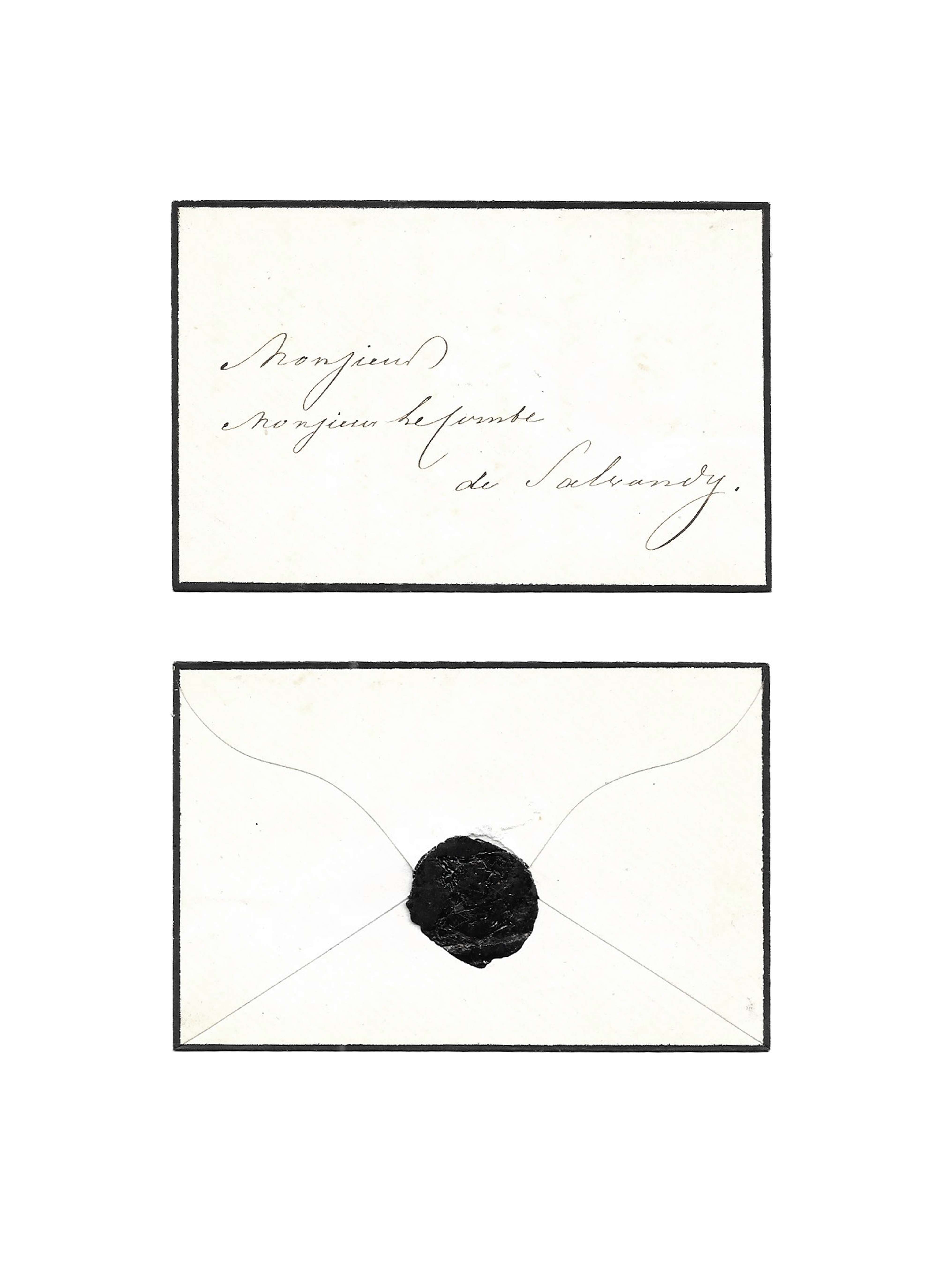 Mourning stationary, with envelope [filled by secretary], black wax seal