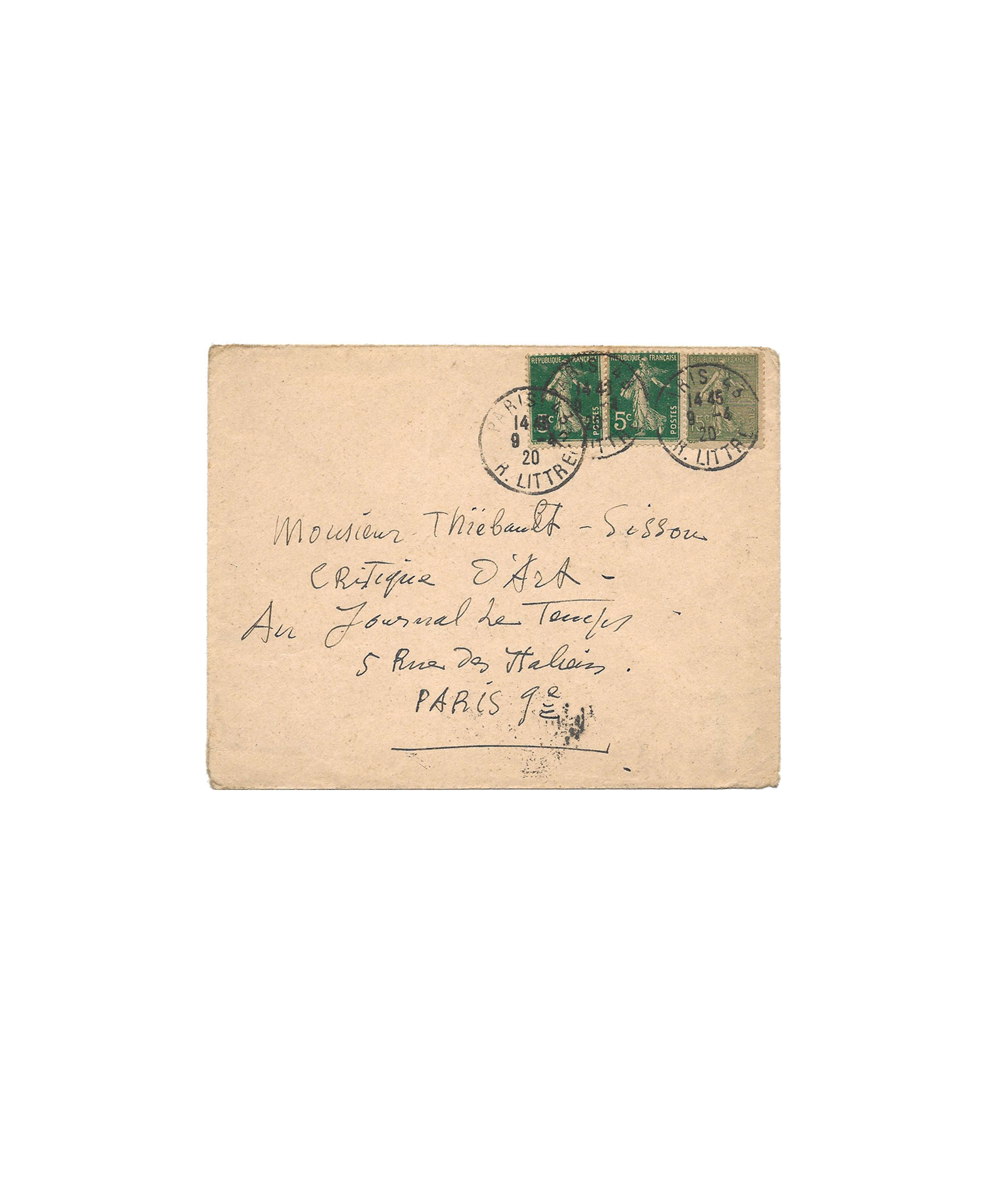 Paris, 9th March 1920, 1 p. in-8° in black ink with autograph envelope