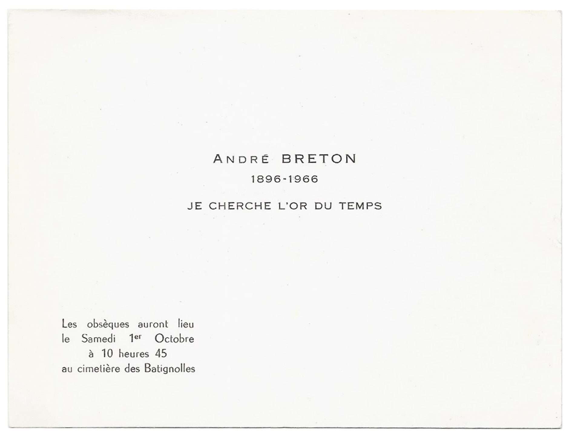 “Je cherche l’or du temps”: this eternal formula, created in 1924, appeared forty-two years later on his death notice in capital letters, and forty-eight hours later at the center of his tomb in the Batignolles Cemetery.