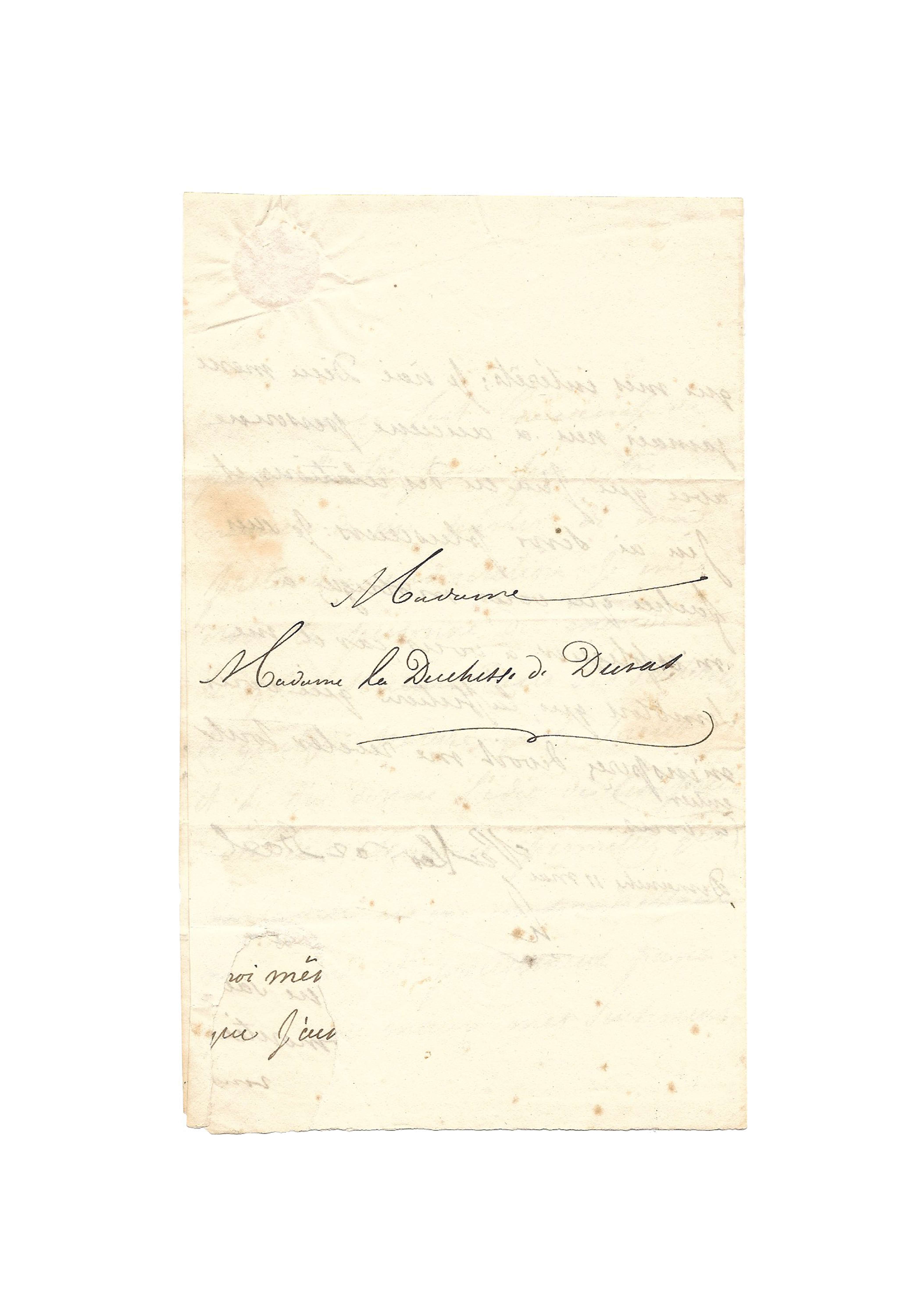 This letter remained in the estate of the Duchess of Duras until 2013