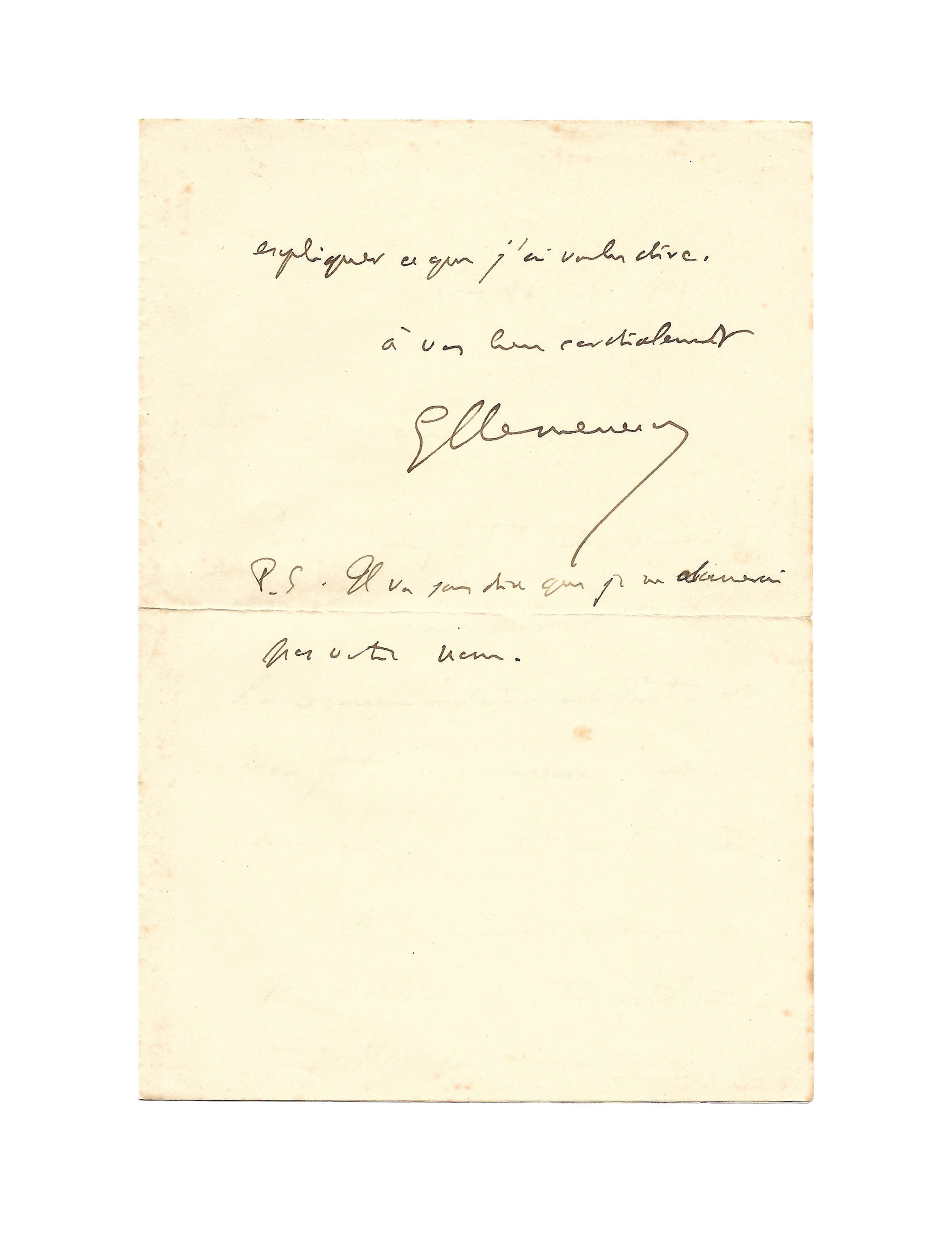 Autograph letter signed “GClemenceau” to Michel Alexandre Gaston Tournier