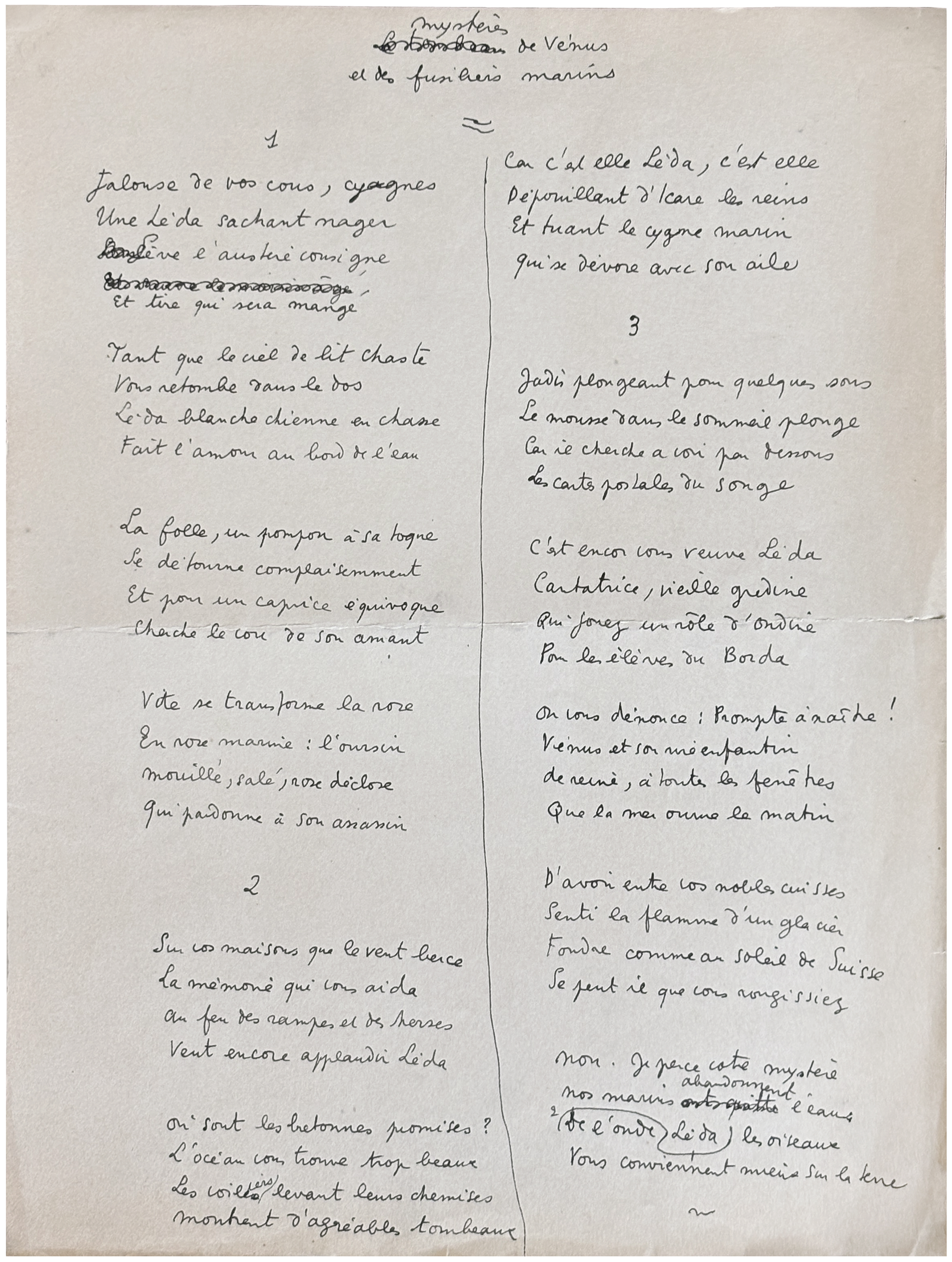 Autograph poem: « Mystères de Vénus et des fusiliers marins »