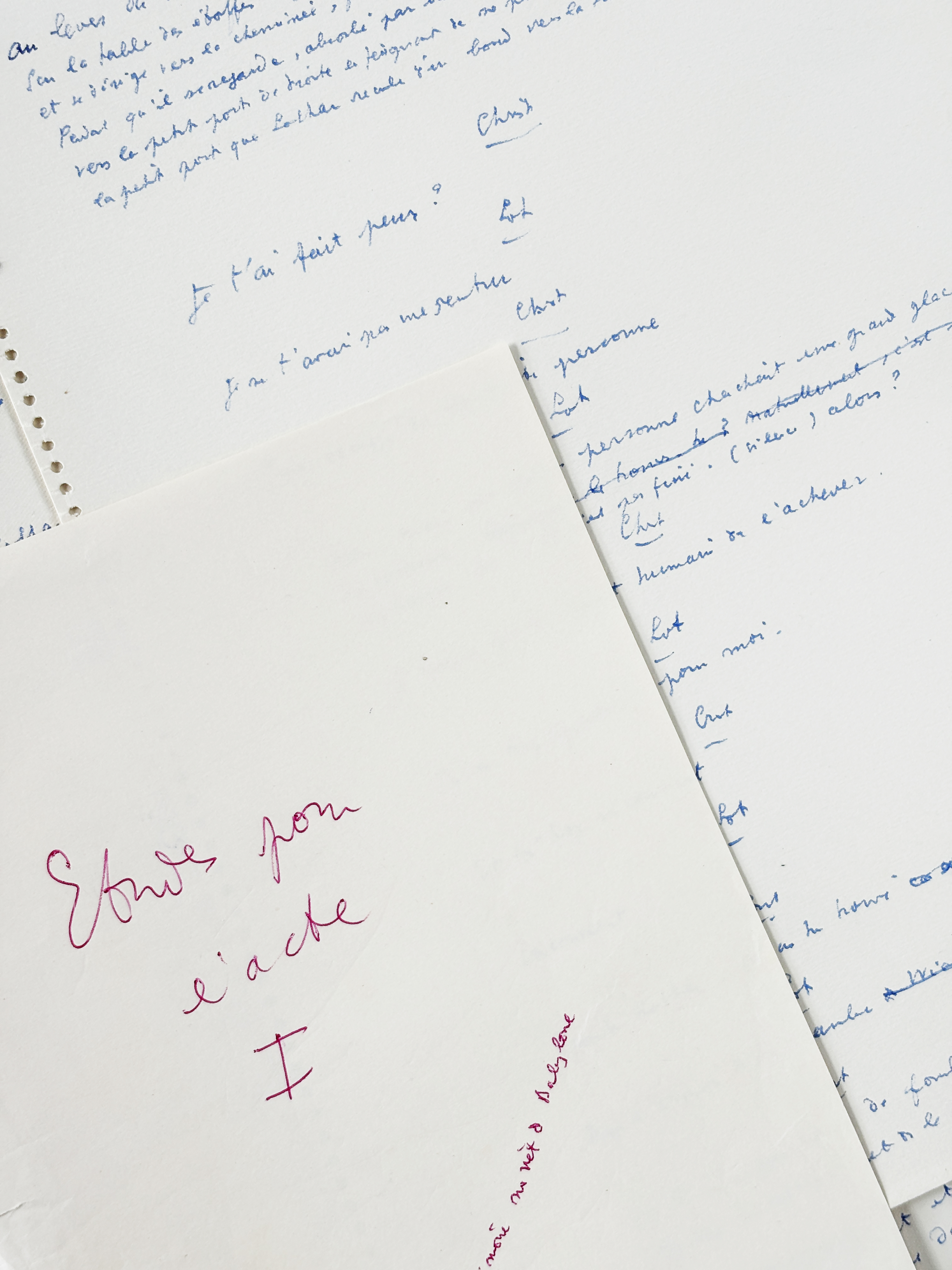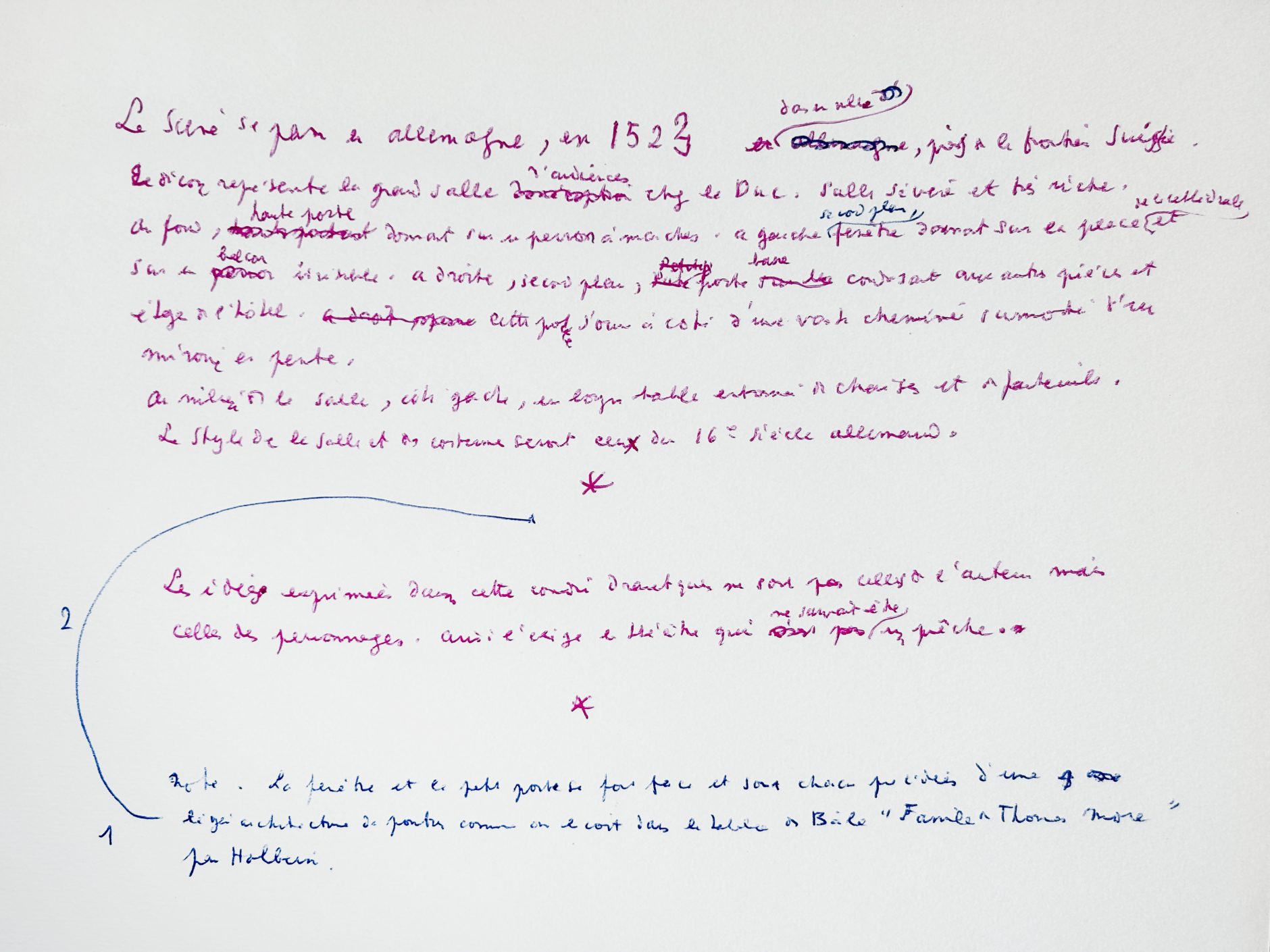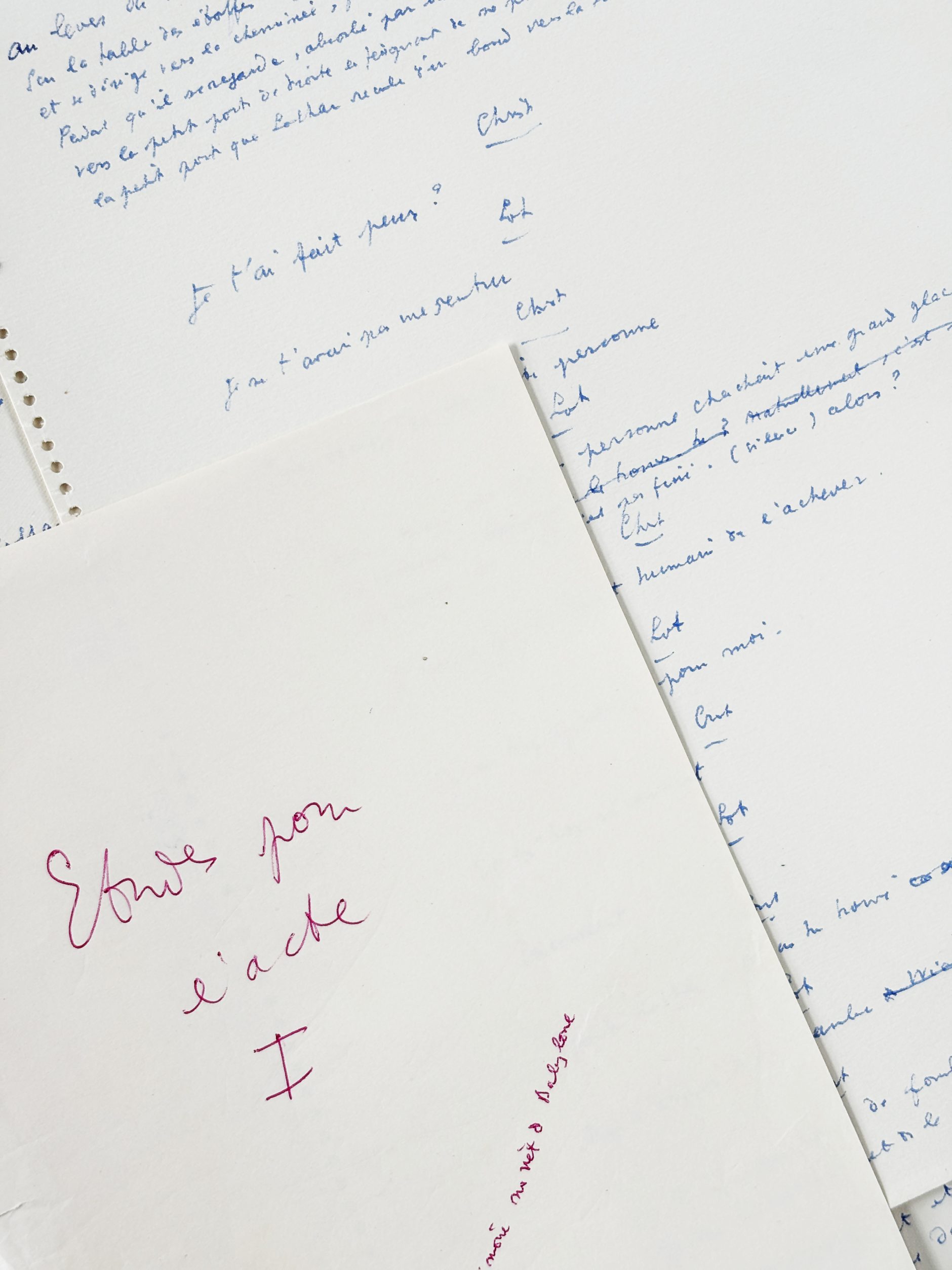 Another preparatory manuscript of the play is known, enriched with several drawings, likewise originating from Francine Weisweiller.