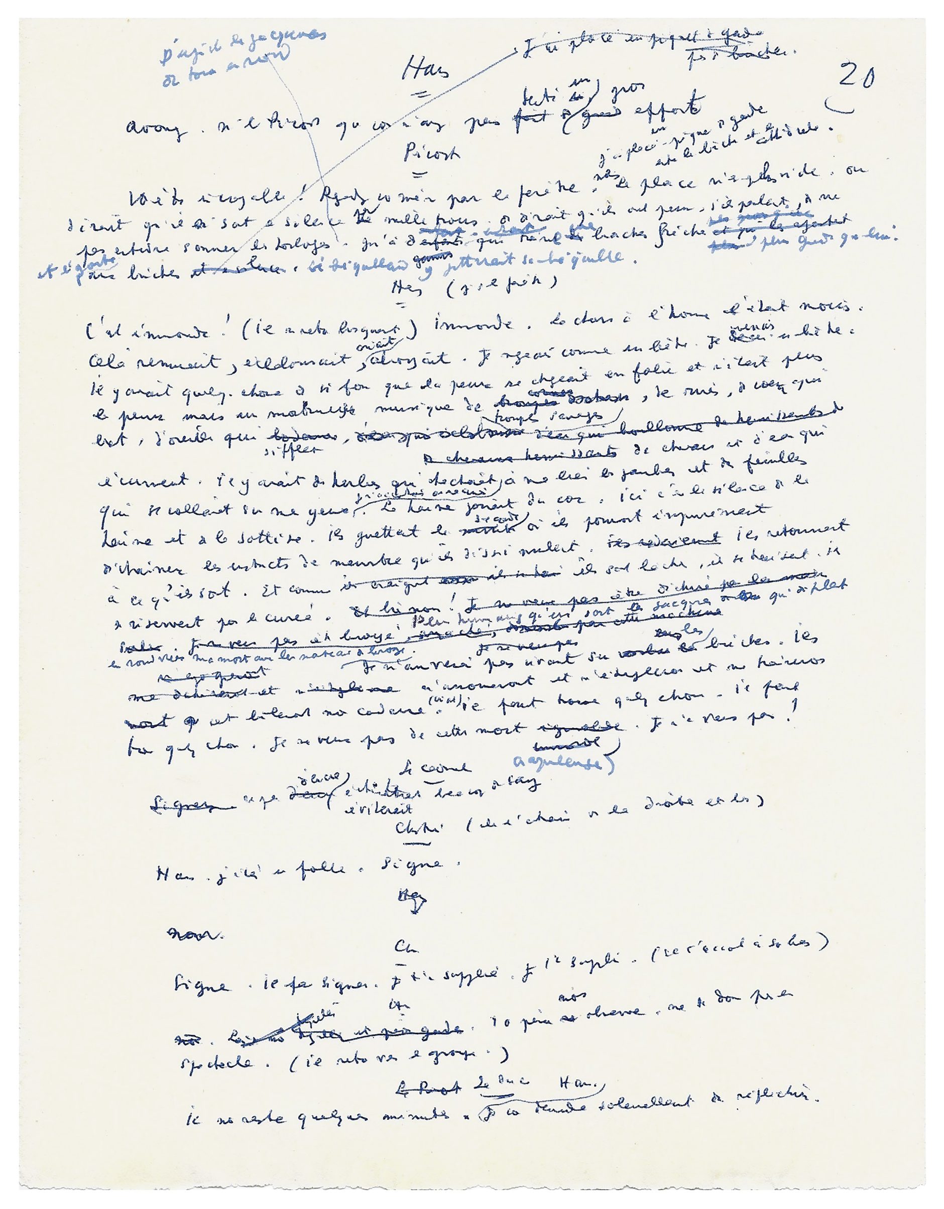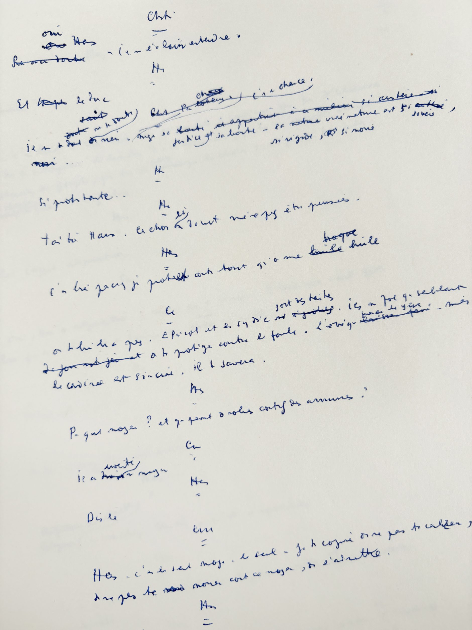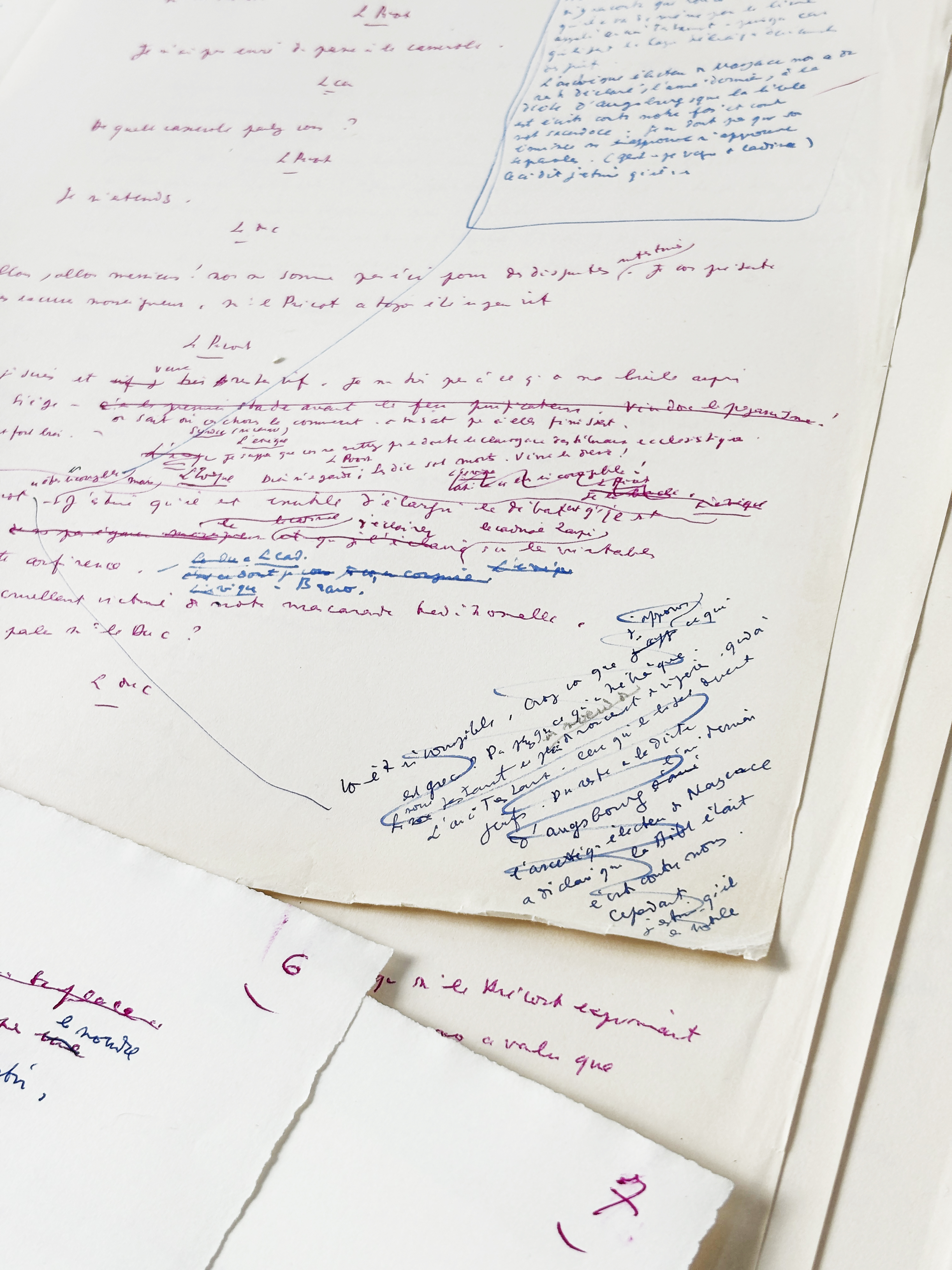 Another preparatory manuscript of the play is known, enriched with several drawings, likewise originating from Francine Weisweiller.