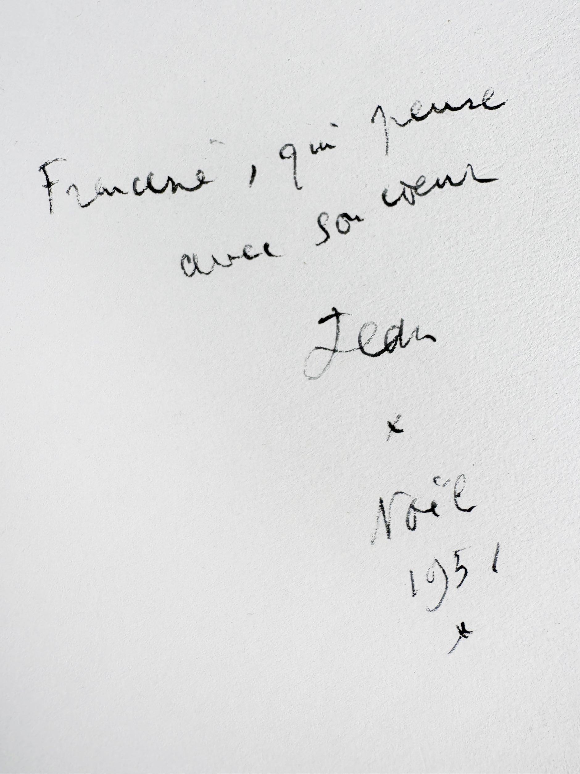 Preceded by three unfoliated leaves, the title leaf is enriched with a double dedication to Francine Weisweiller: “À Francine, À bord de l’Orphée II [Francine Weisweiller’s yacht],” followed by “À Francine, who thinks with her heart. Jean. Noël 1951.”