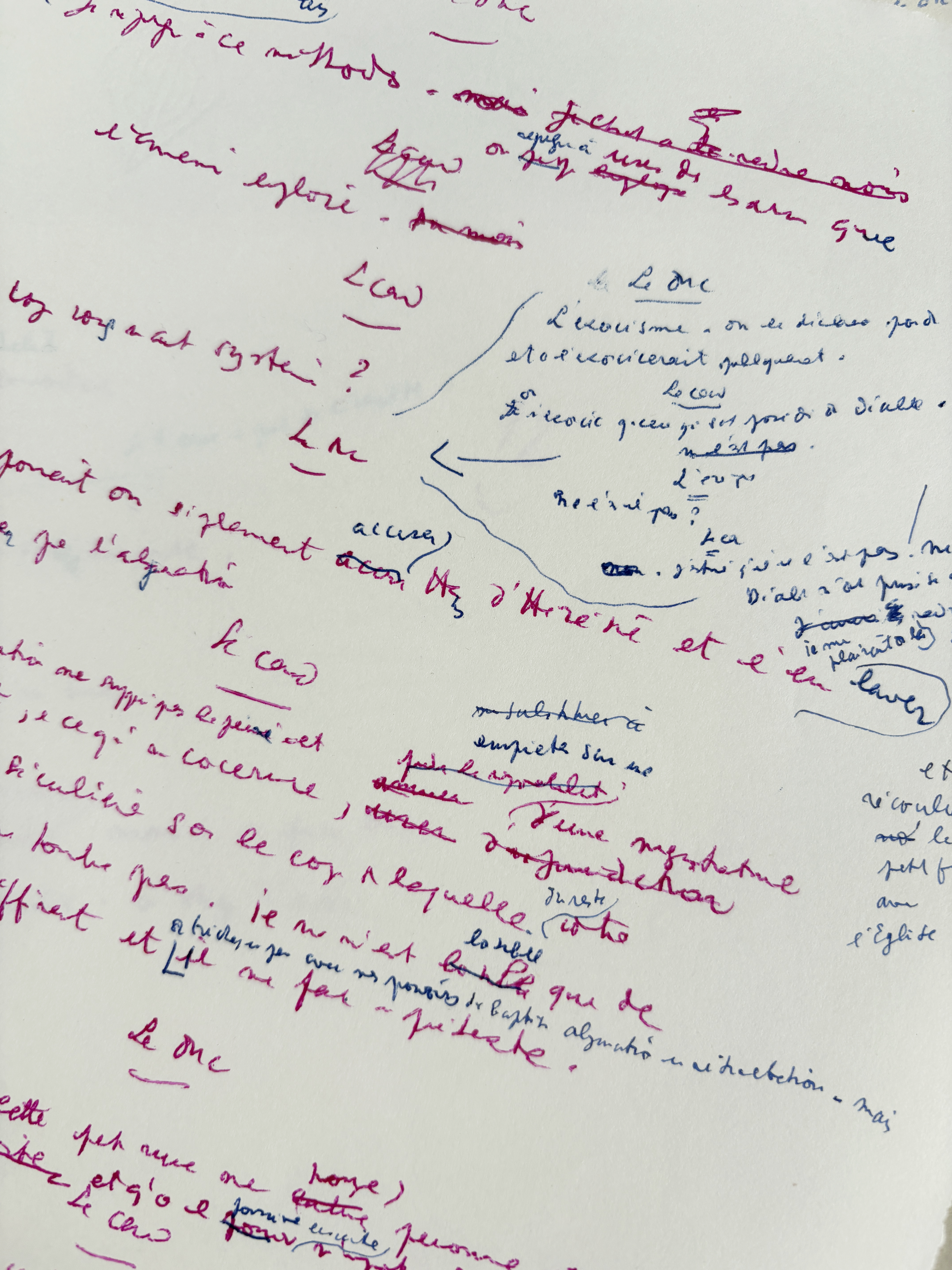 Very numerous erasures, obliterations, corrections, additions, and overwritings, all in Cocteau’s hand.