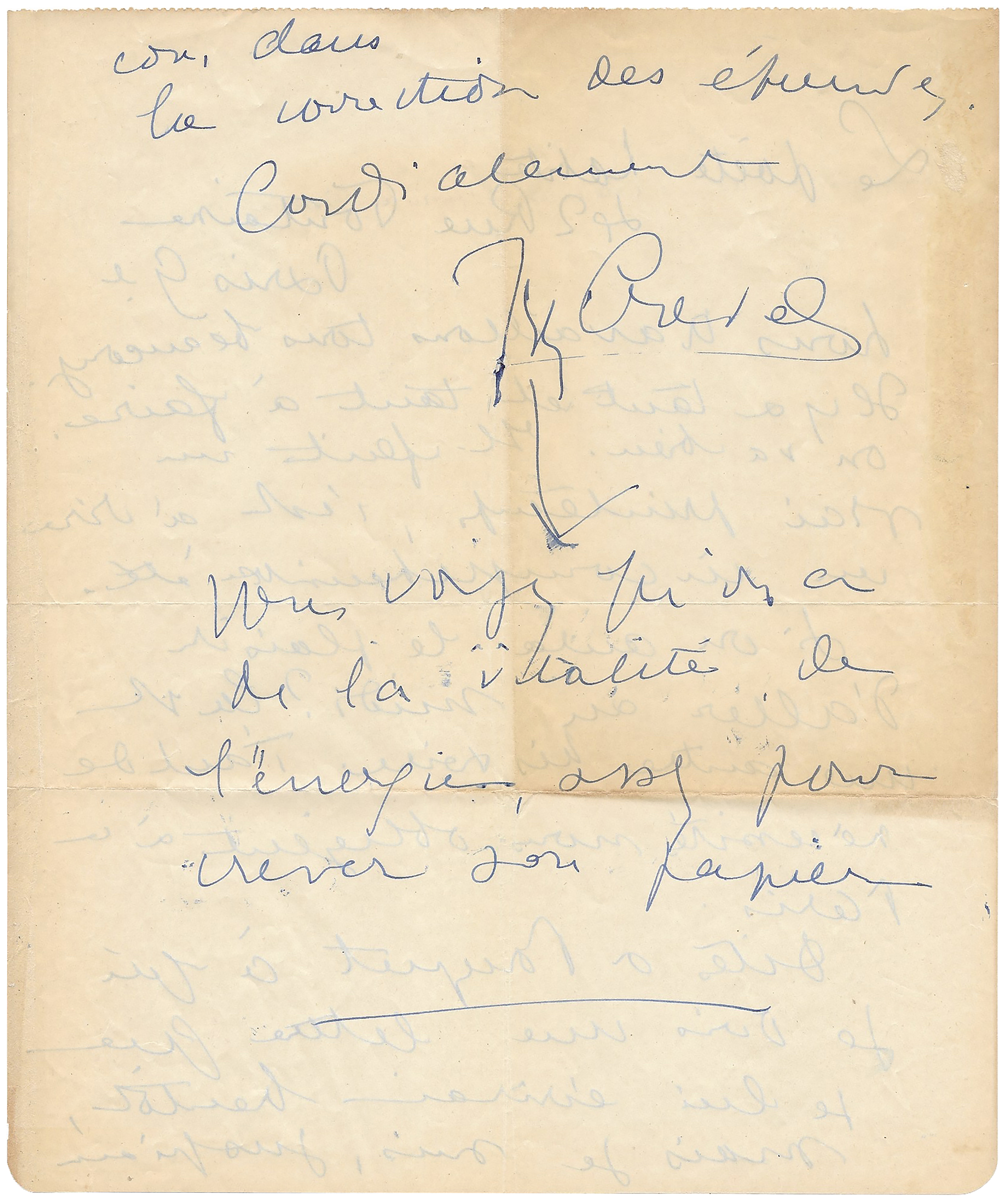 « Tell Bousquet, to whom I am sending a letter, that I will write to him soon, but I am up to my neck in proofreading »