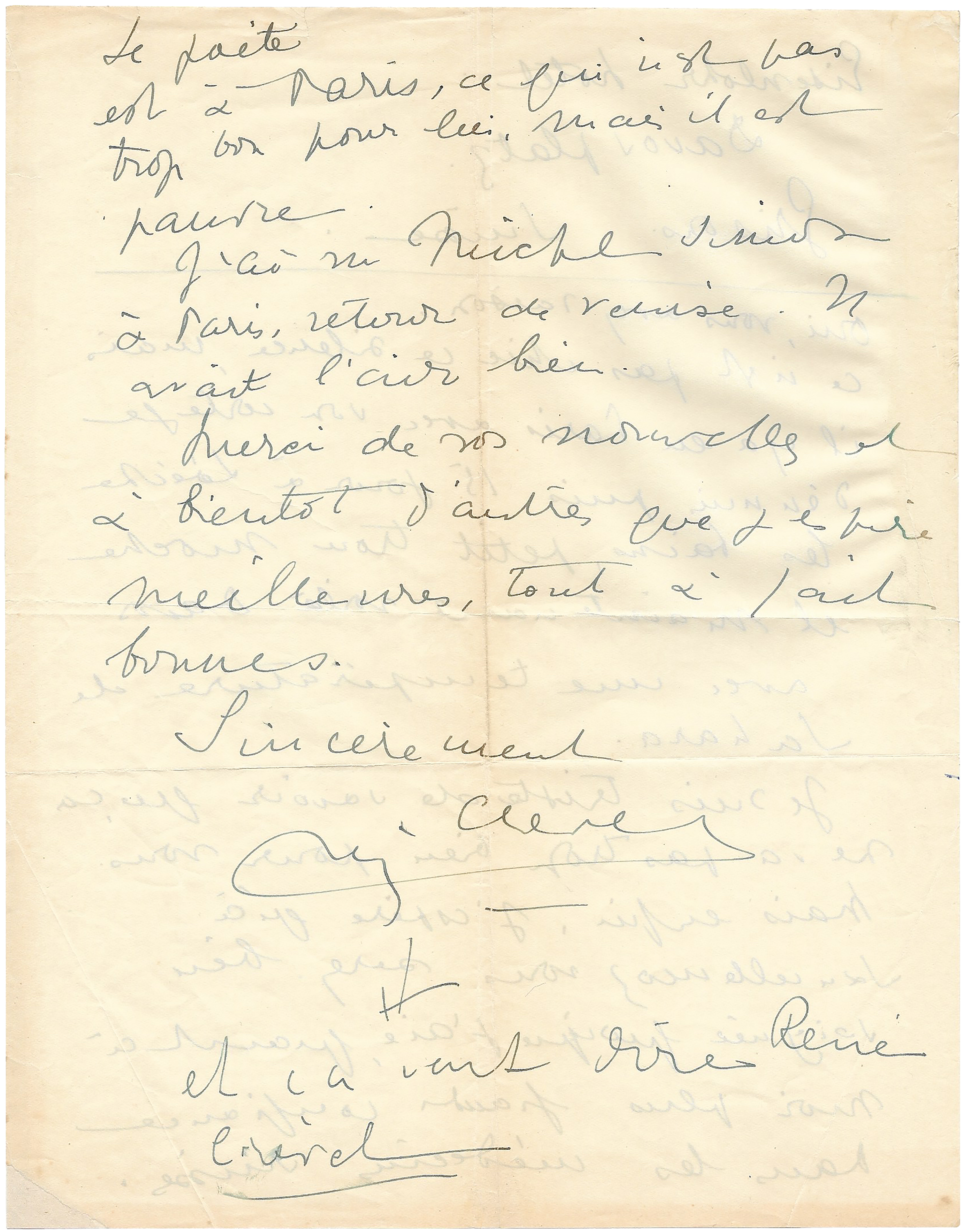 A hole in the first letter’s leaf, as Crevel pressed too hard with his pen on the paper; he apologizes for it in a postscript.