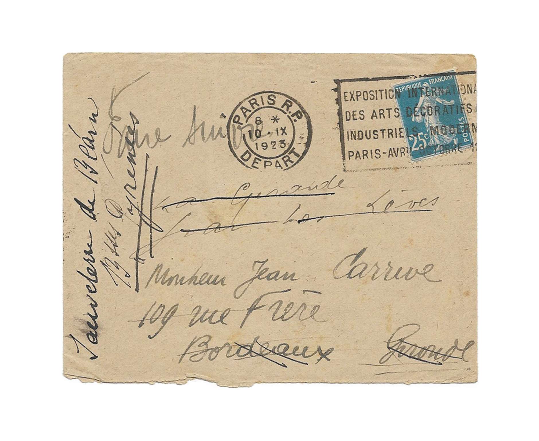 A solitary student from Bordeaux in open rebellion against family and social conventions, Carrive discovered the review Littérature and sought, through André Breton, to join the Parisian avant-garde circle. Wary of this overly prolific correspondent, Breton often entrusted Robert Desnos with the task of replying to him. Between the two young men there then developed an exchange of remarkable freedom and virulence (in sharp contrast to this gentle note), where provocation and a taste for literary subversion served as an implicit manifesto.