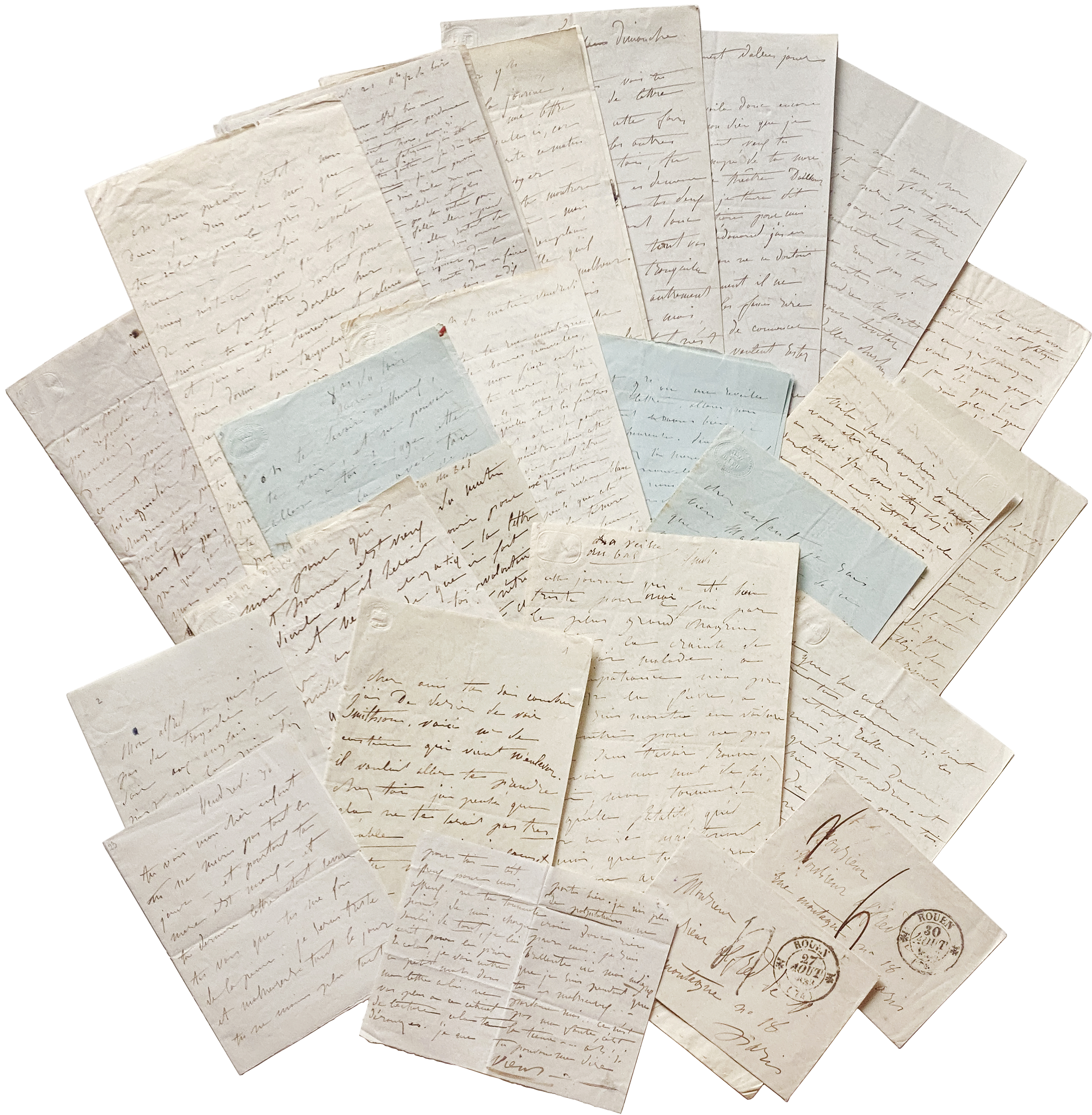 A remarkable collection of twenty-two letters to her lover Alfred de Vigny, mostly dating from the first half of 1833 – Between fiery declarations, deceptions and jealousy, this correspondence bears witness to the most ardent period of love between the two lovers