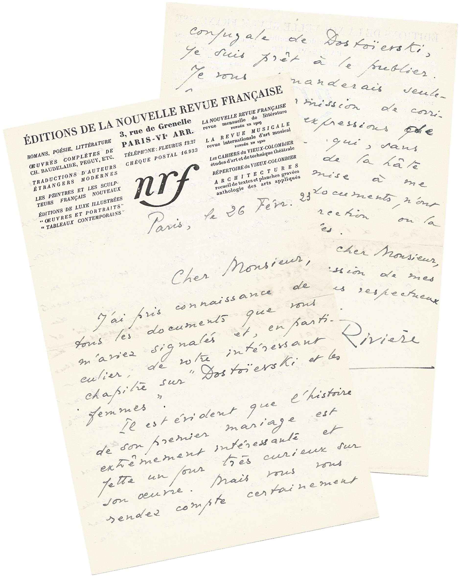 [DOSTOEVSKY] RIVIÈRE, Jacques (1886-1925)
