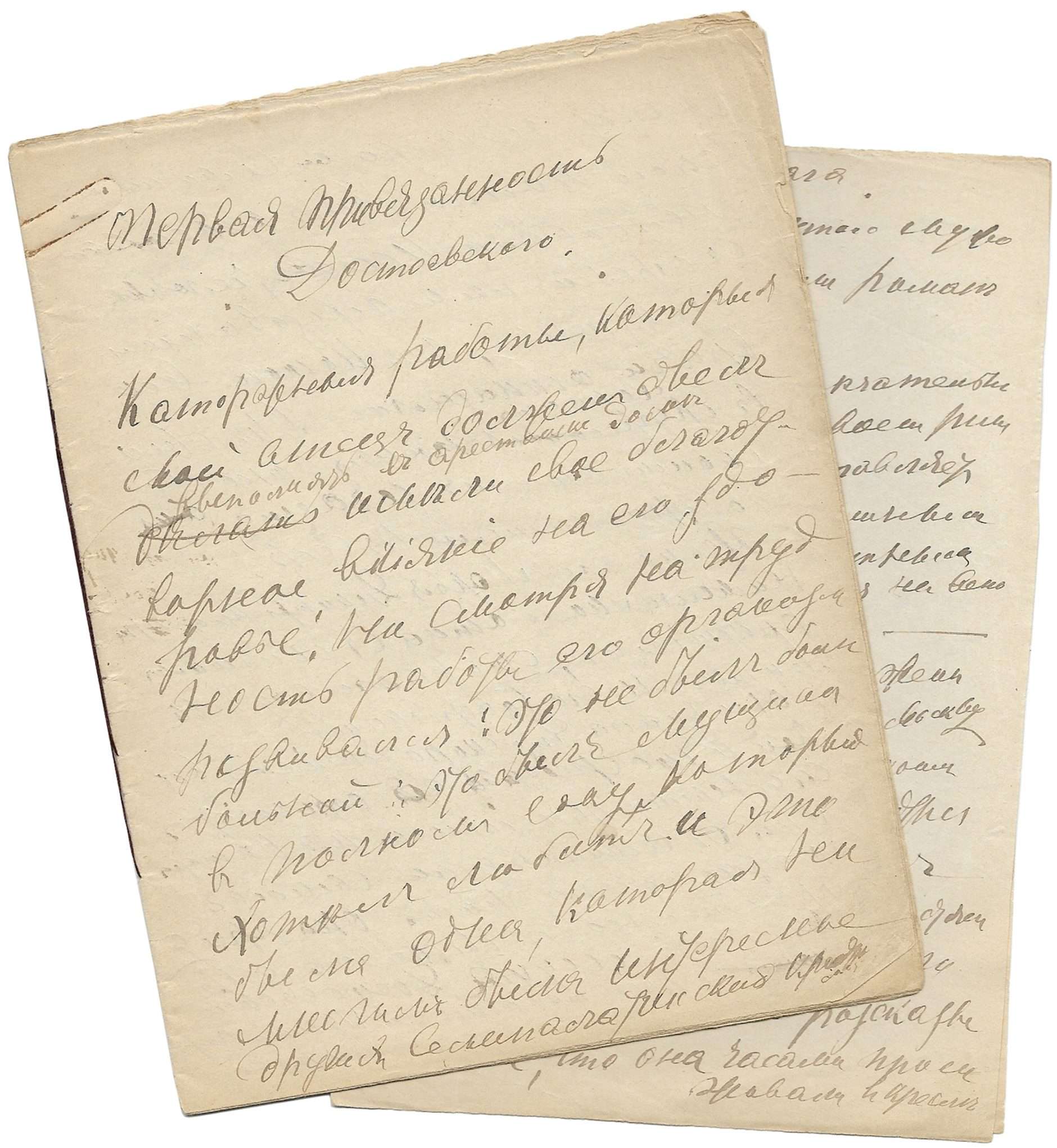 The manuscript corresponds to the ninth chapter of the memoirs of Liubov Fyodorovna Dostoevskaya about her father.