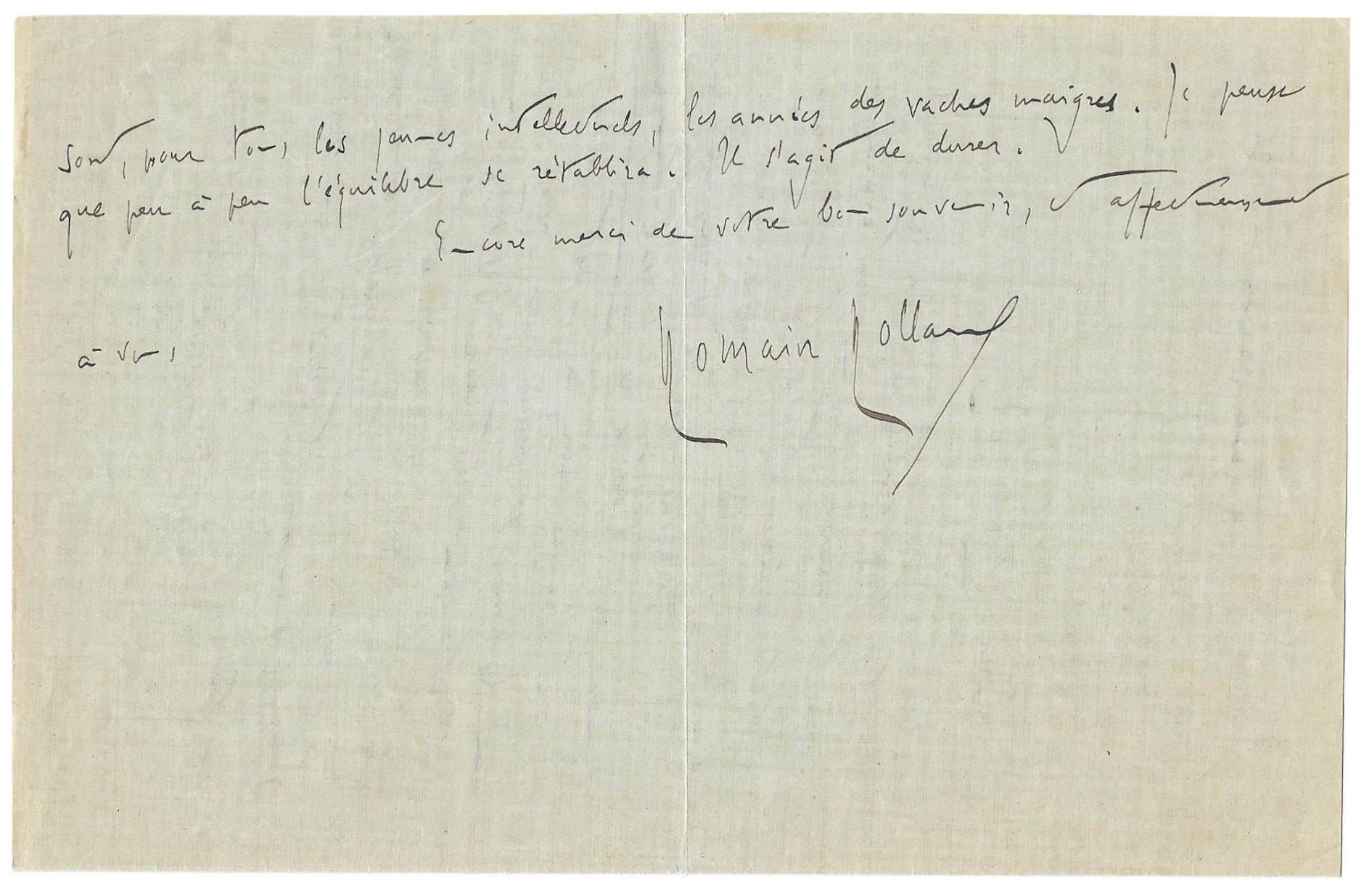 Autograph letter signed « Romain Rolland » to Louis Chazai