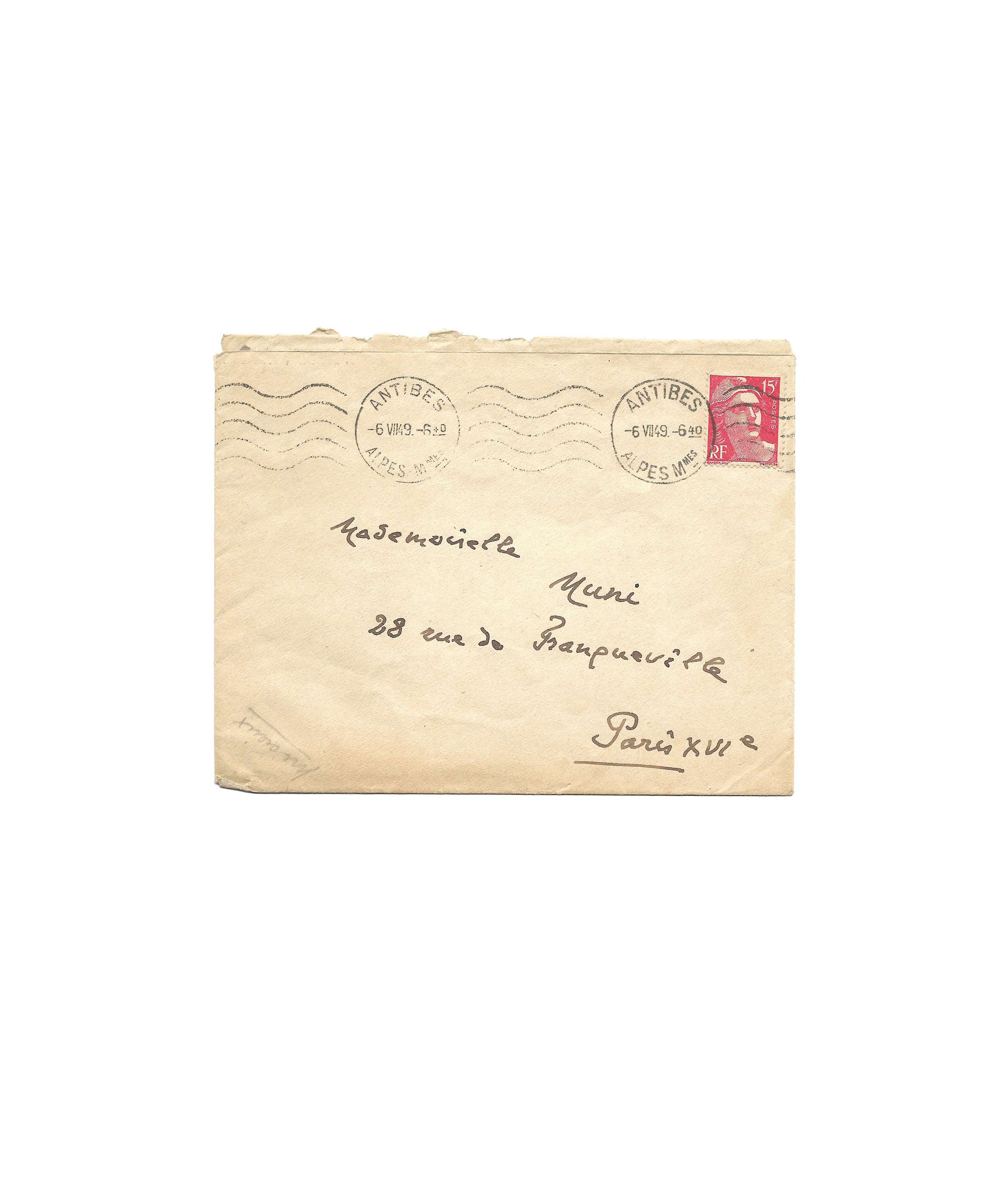 [Antibes, 6th July 1949], 1/4 p. in-8, autograph enveloppe attached