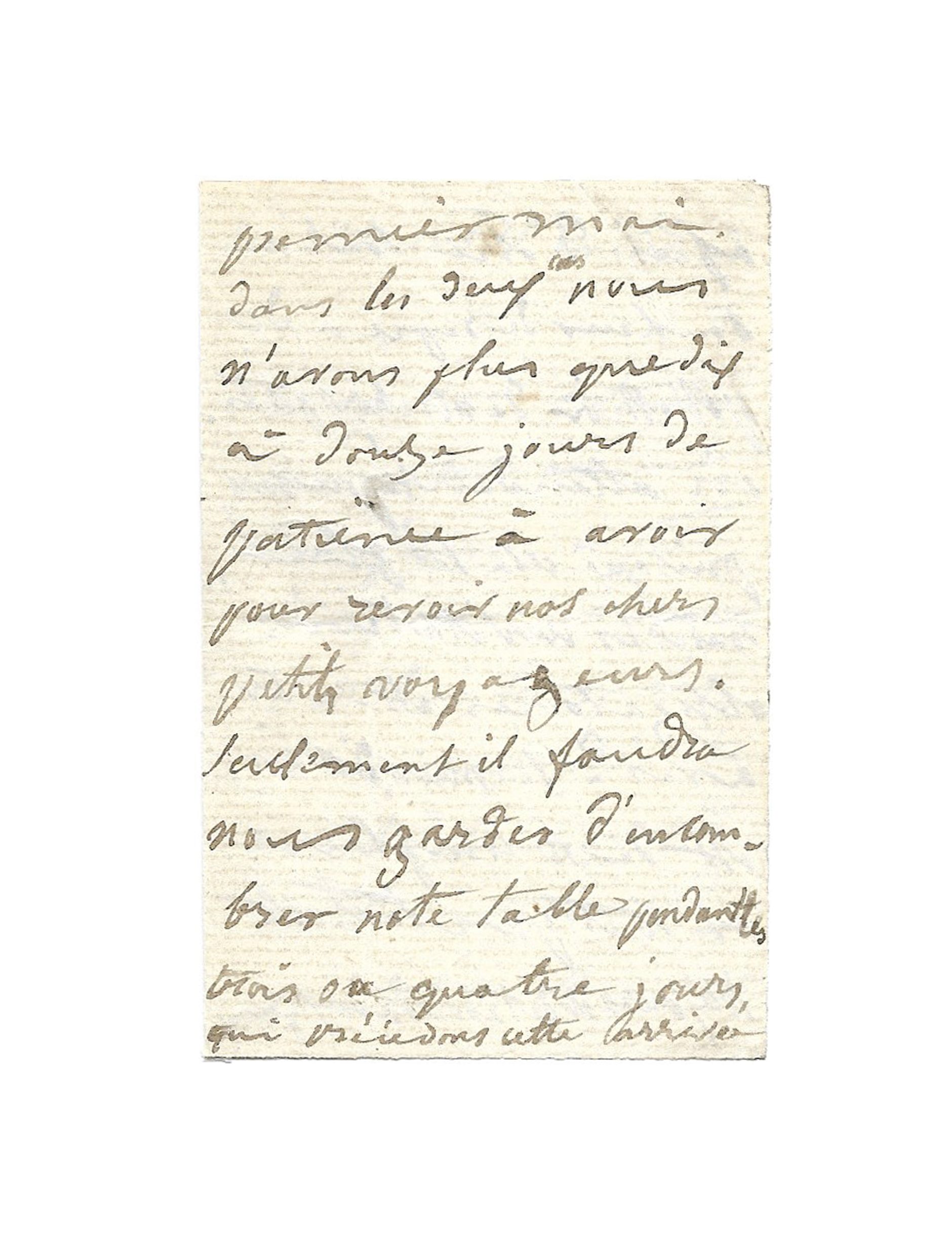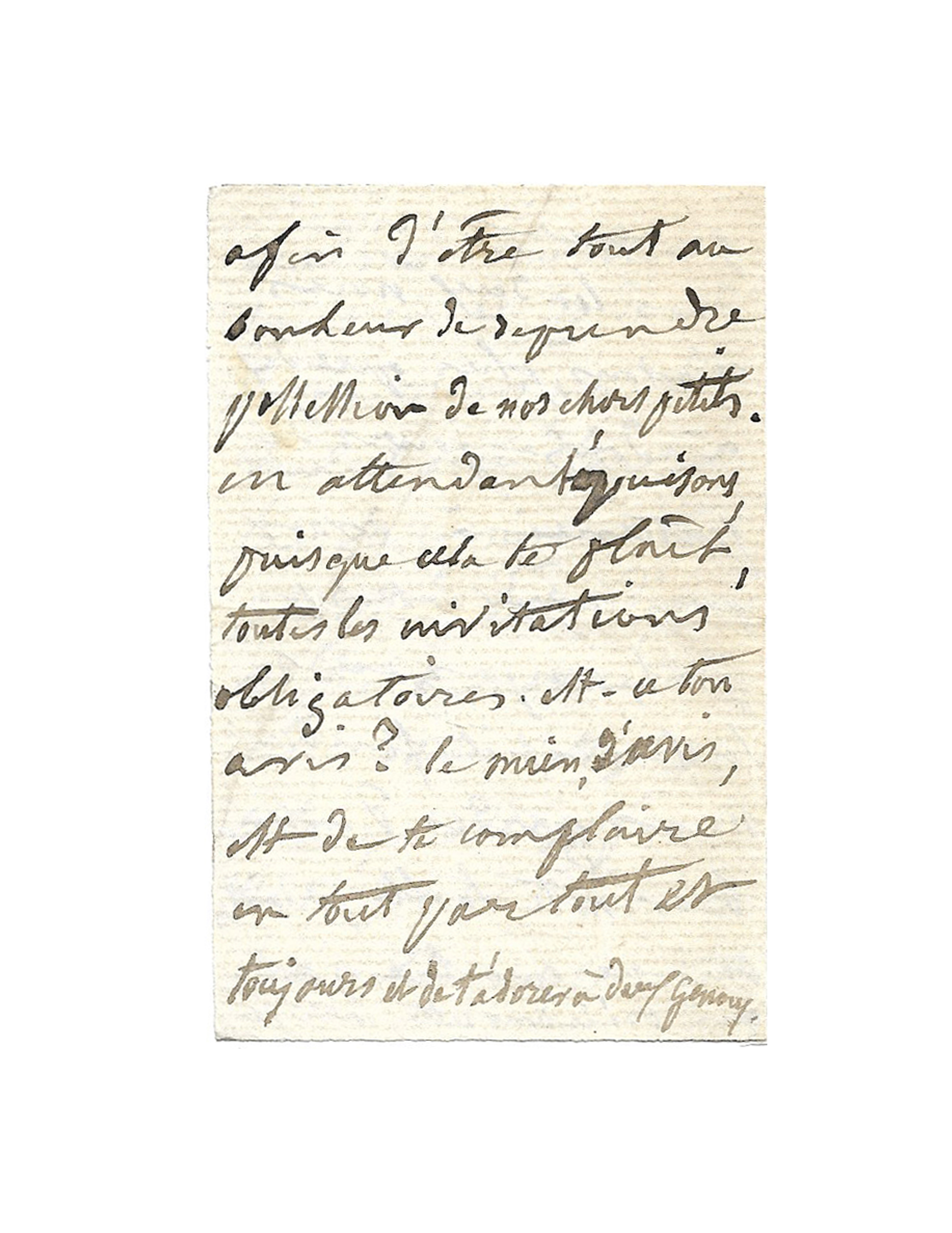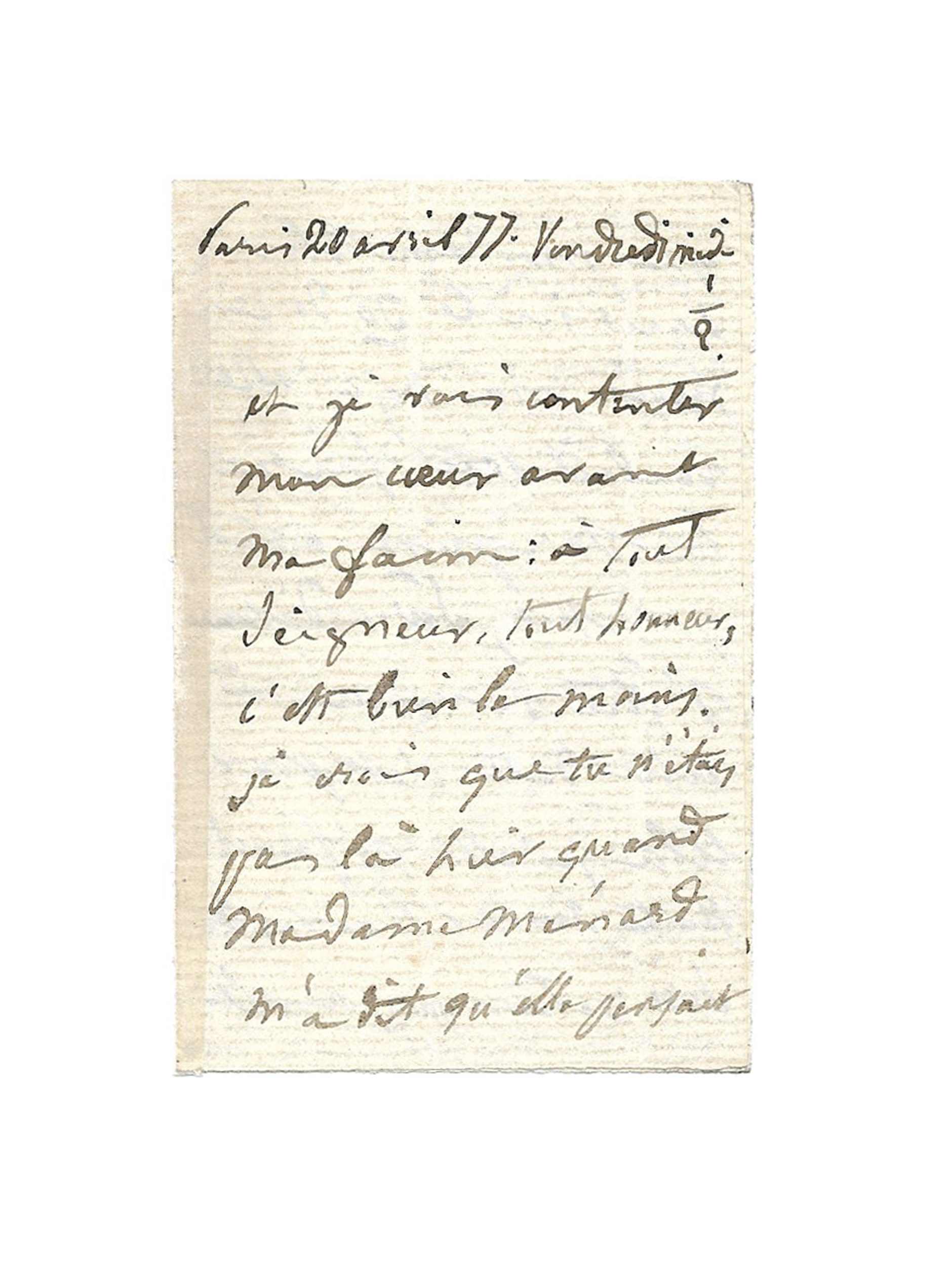 This is perhaps the only letter from Juliette to Victor still in private hands for the year 1877. The entire corpus of letters for this year is now in the BnF (NAF 16398).