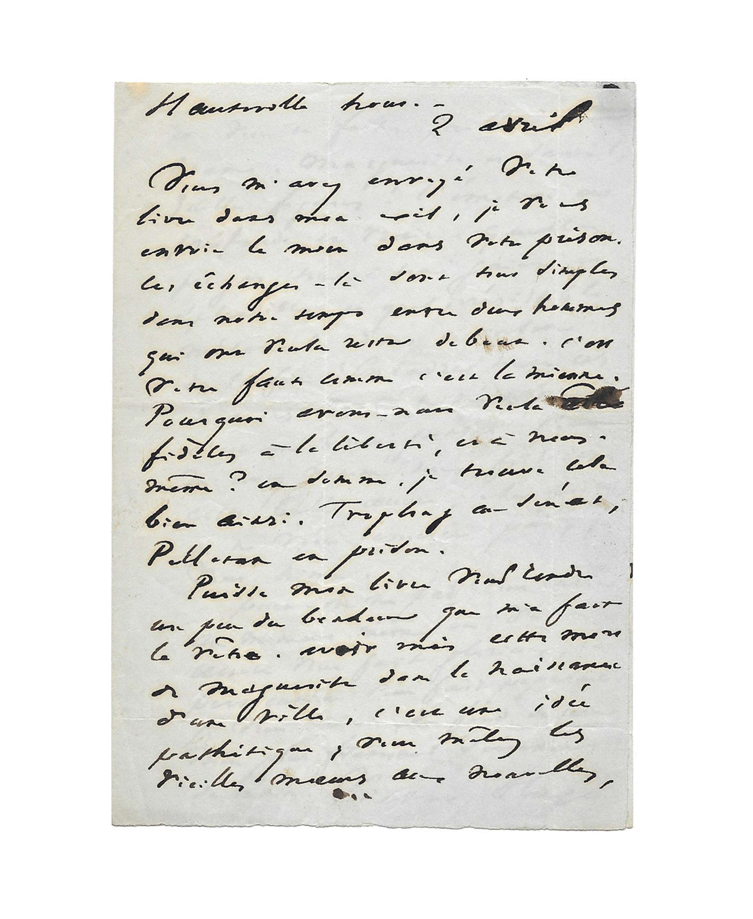Victor Hugo here acknowledges the receipt of Eugene Pelletan’s latest book, The Birth of a City, Pagnerre, 1861 [Royan].