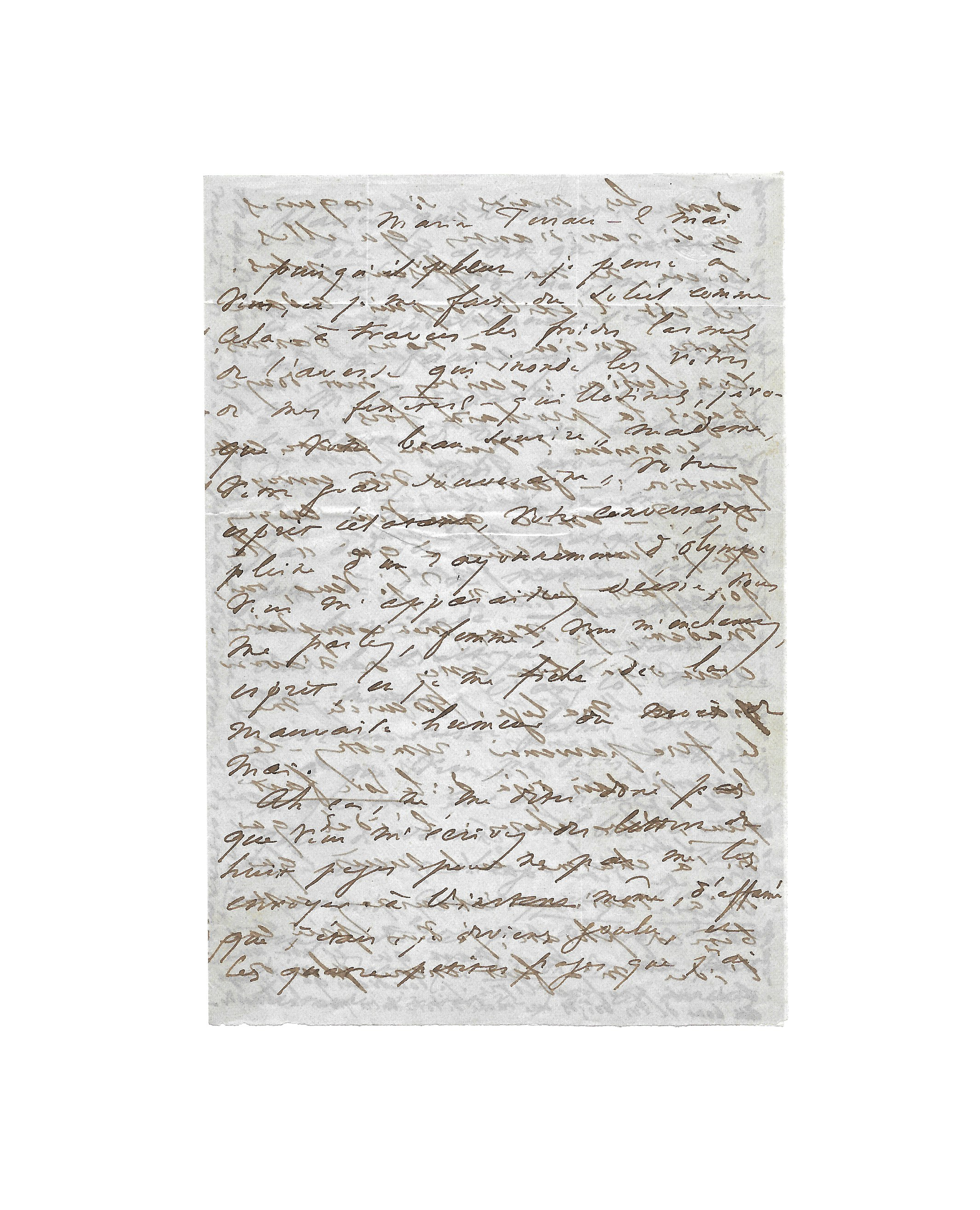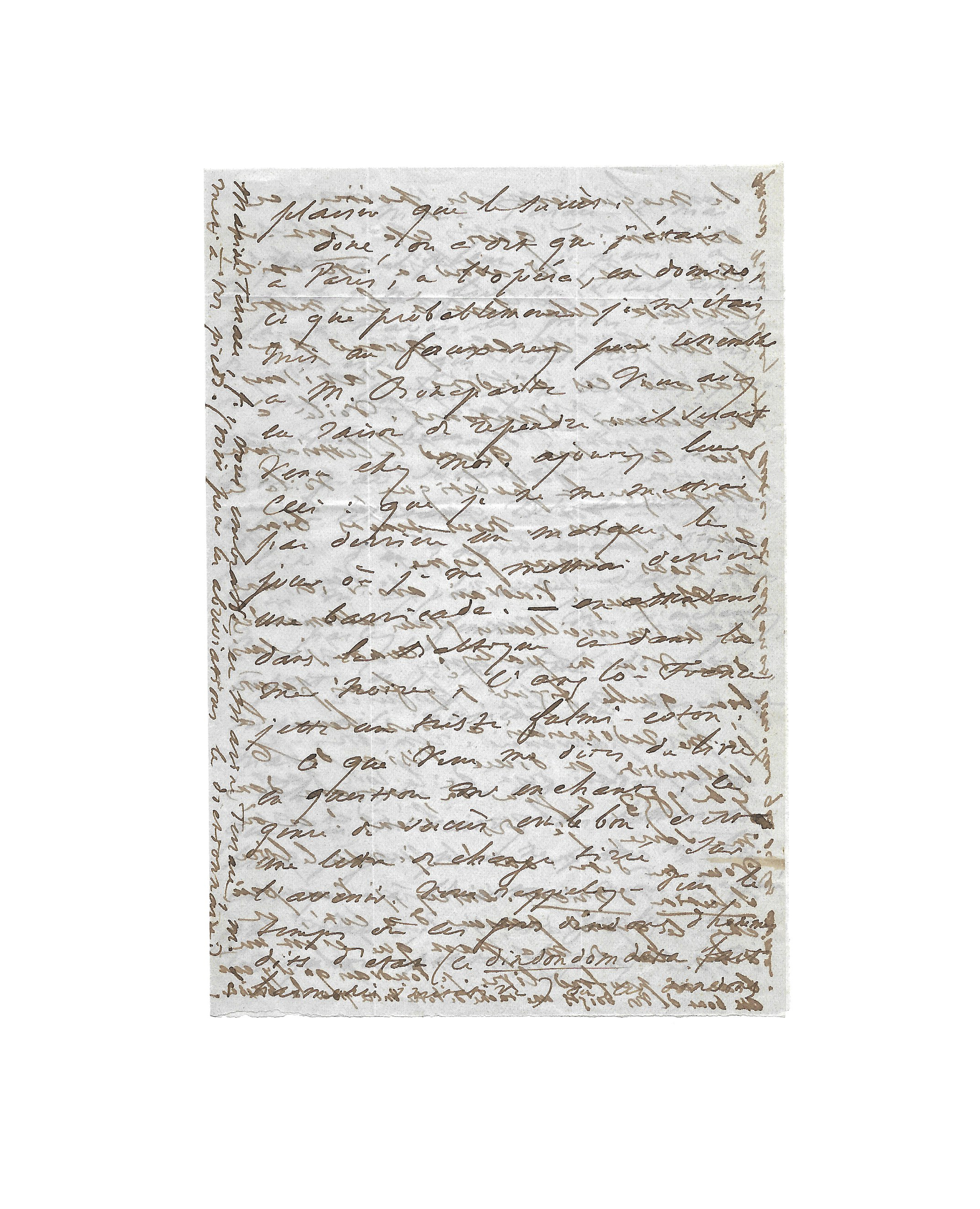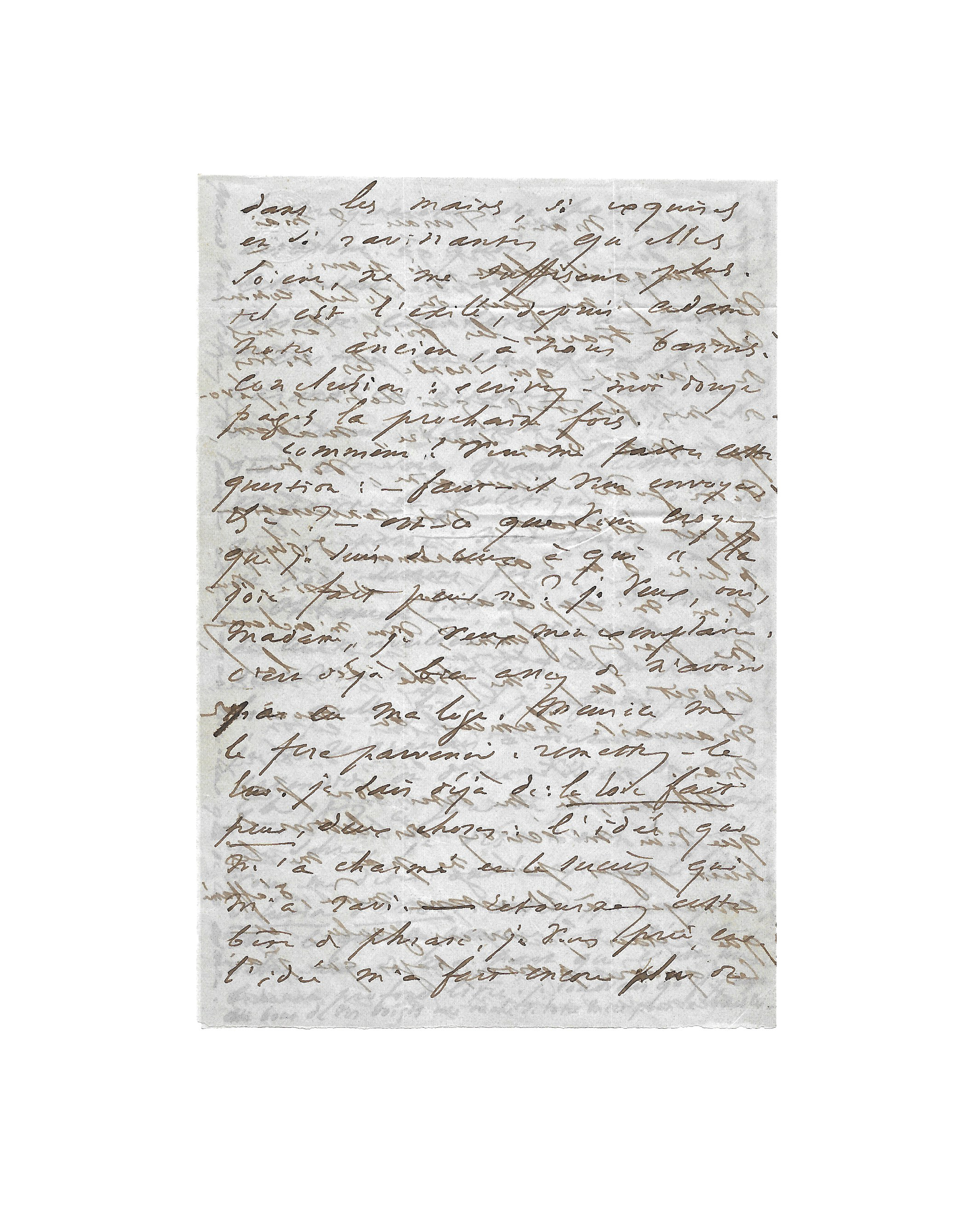 Ah ! ça, ne me dites donc pas que vous m’écrivez des lettres de huit pages, pour ne pas me les envoyer. À l’instant même, d’affamé que j’étais, je deviens goulu, et les quatre petites pages que j’ai dans les mains, si exquises et si ravissantes qu’elles soient, ne me suffisent plus. Tel est l’exilé, depuis Adam, notre ancien, à nous bannis. Conclusion : écrivez-moi douze pages la prochaine fois.