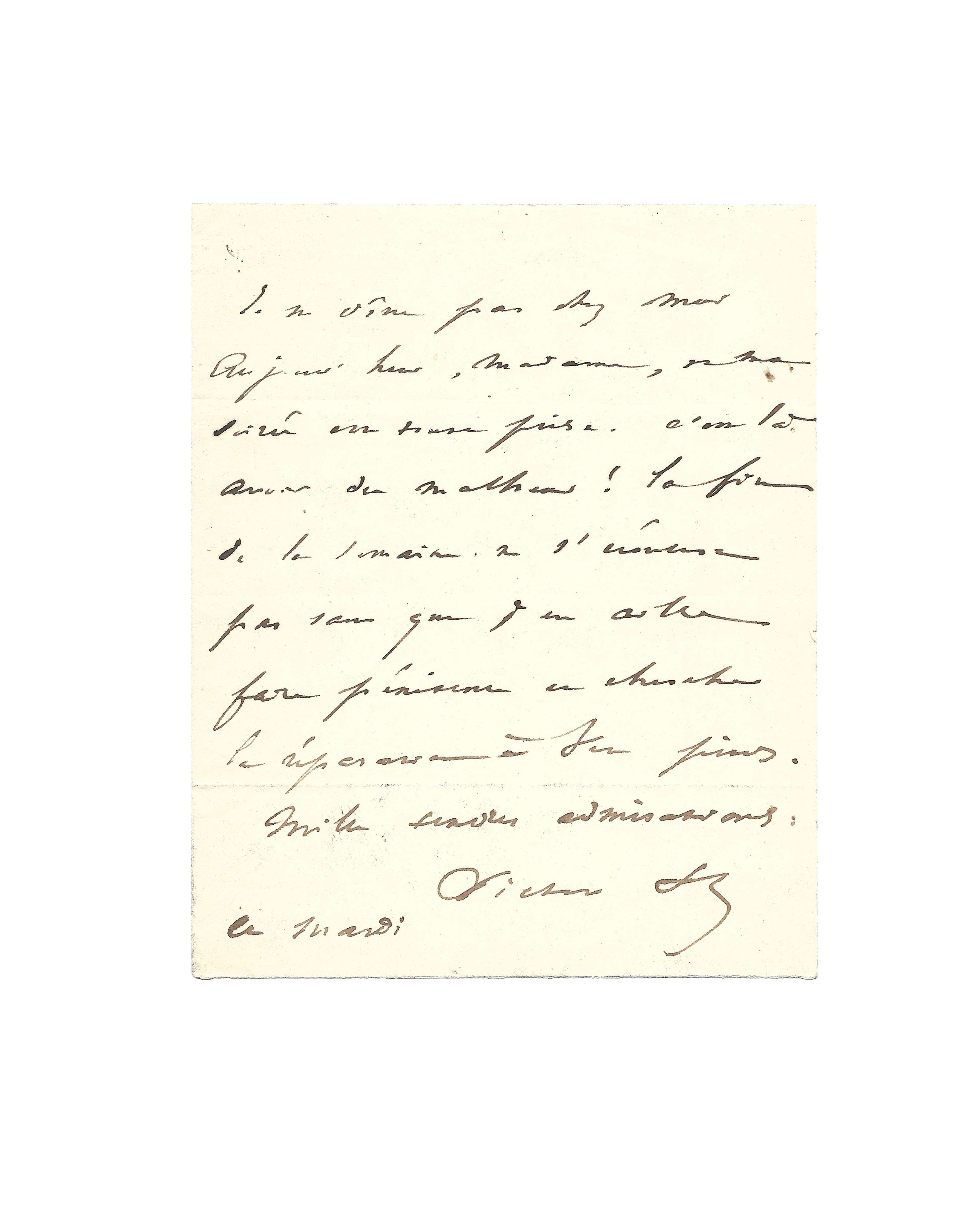 Autograph letter signed “Victor H” to Delphine de Girardin