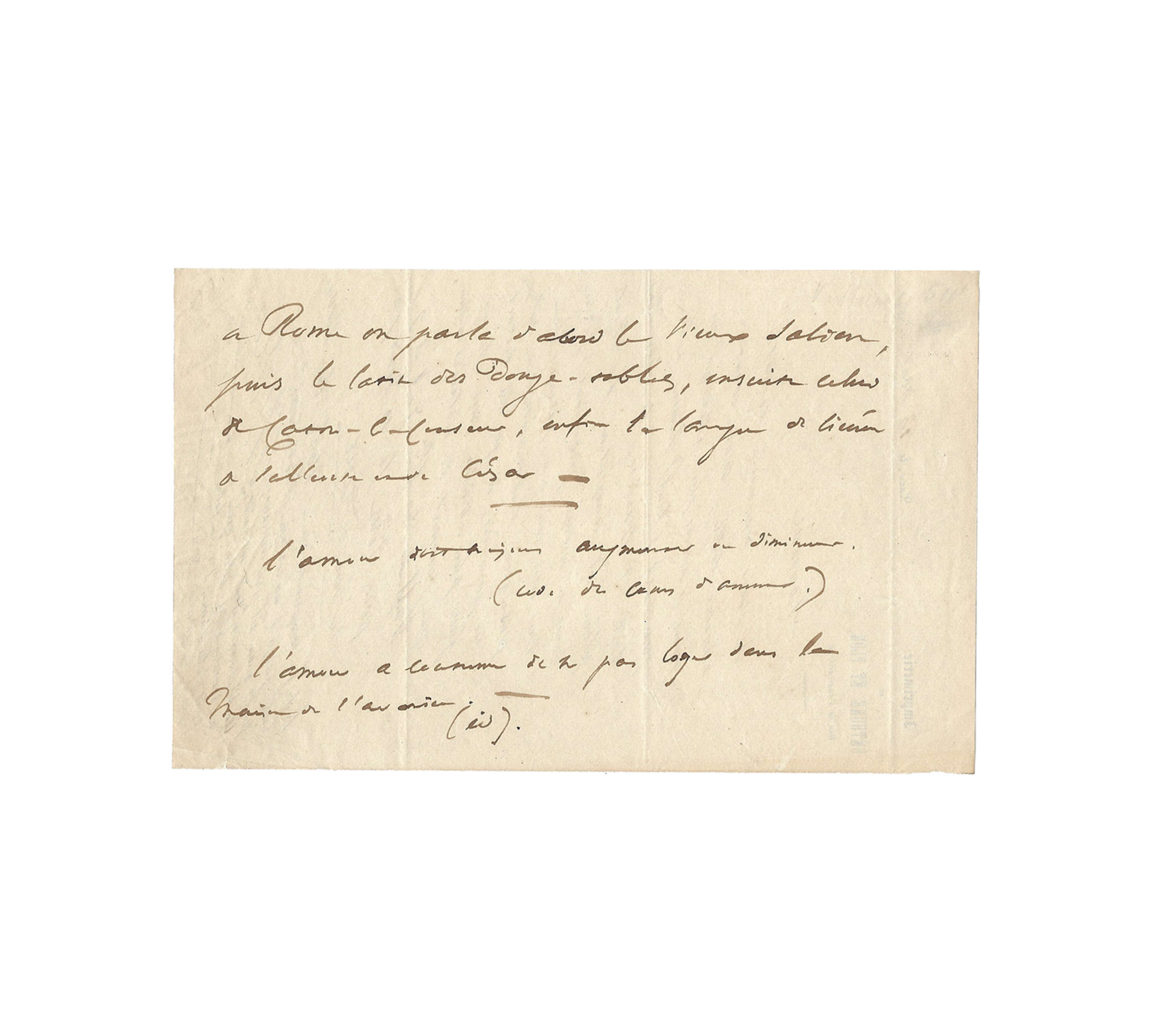 Autograph notes on ancient Rome and aphorisms on love
