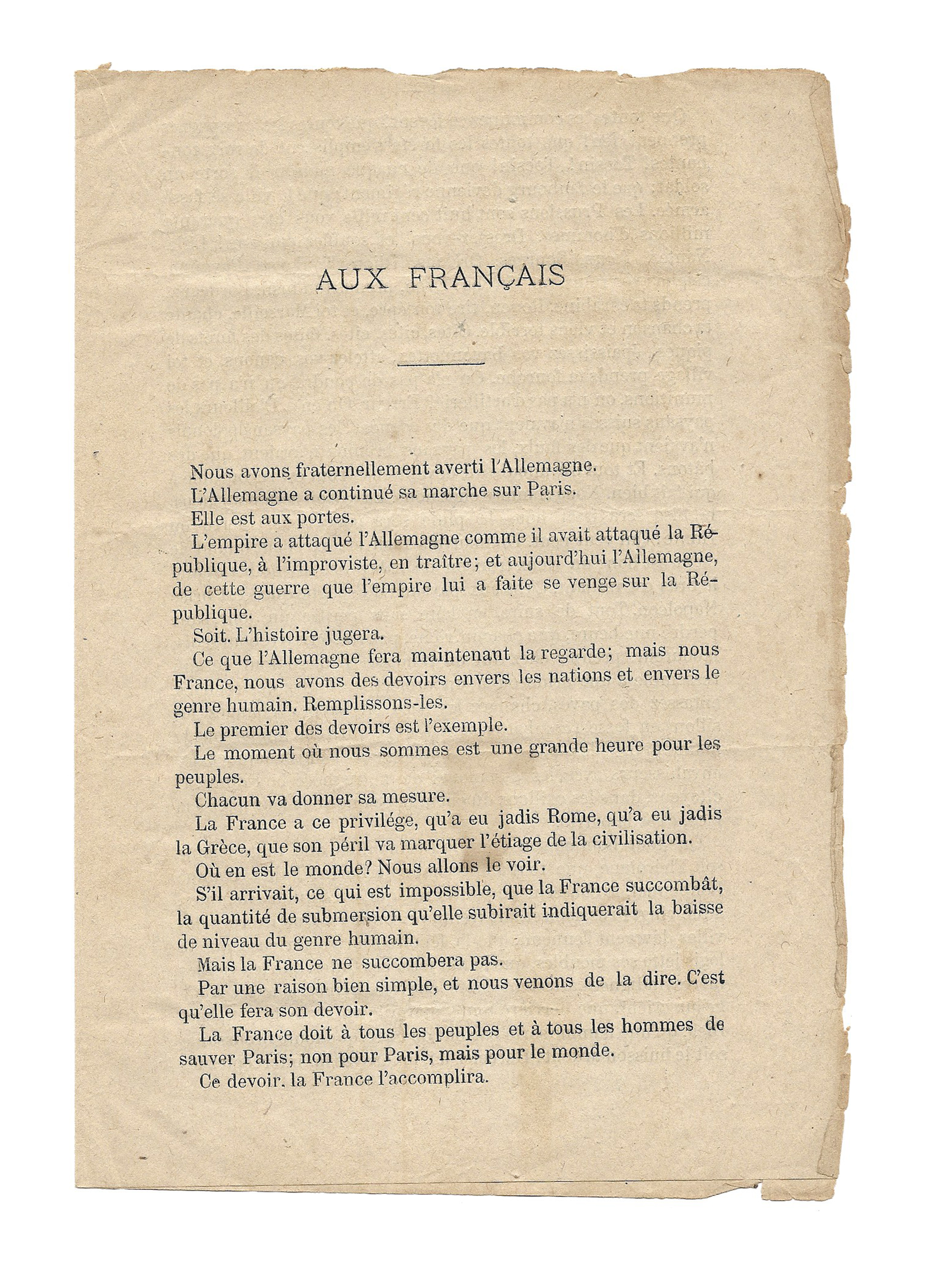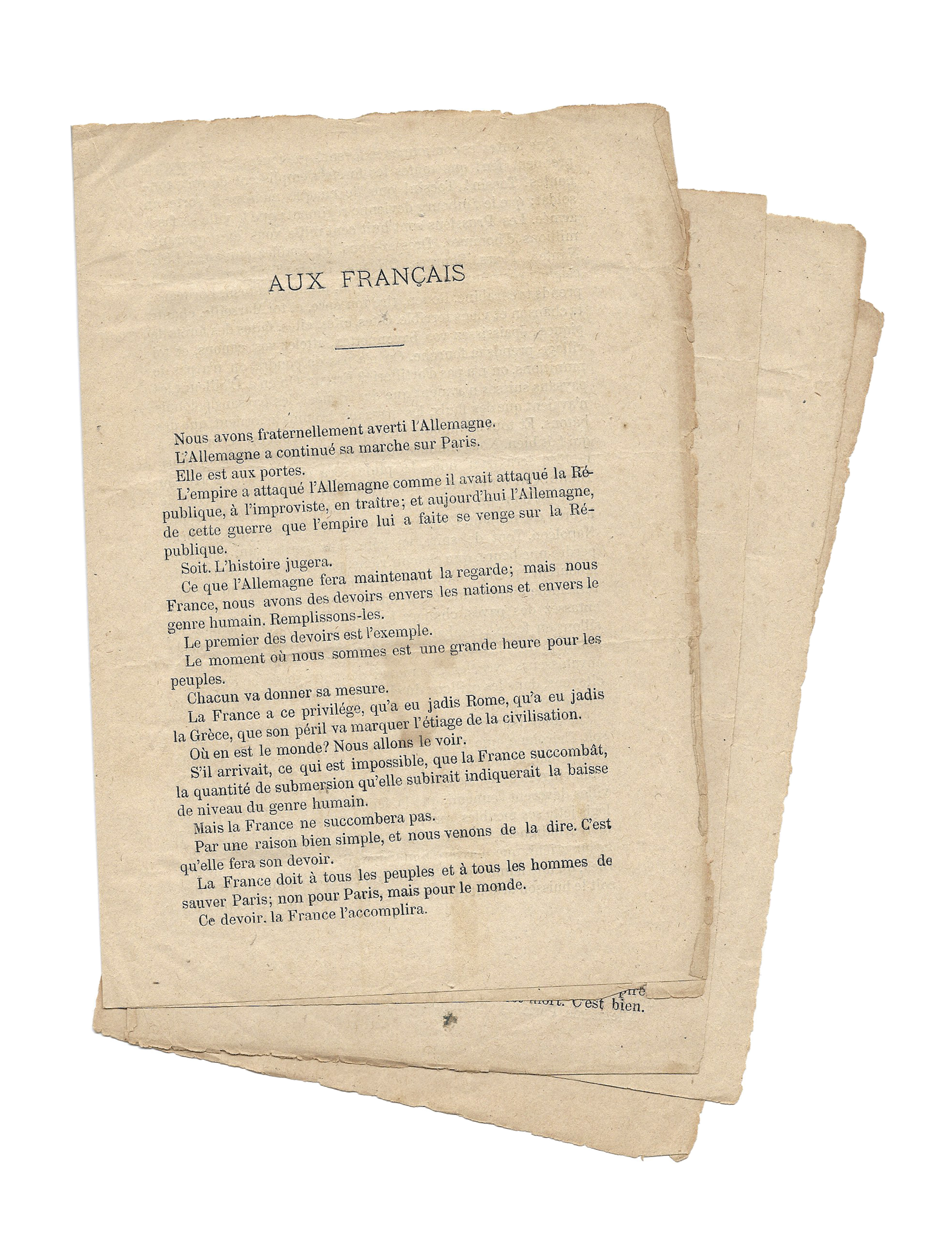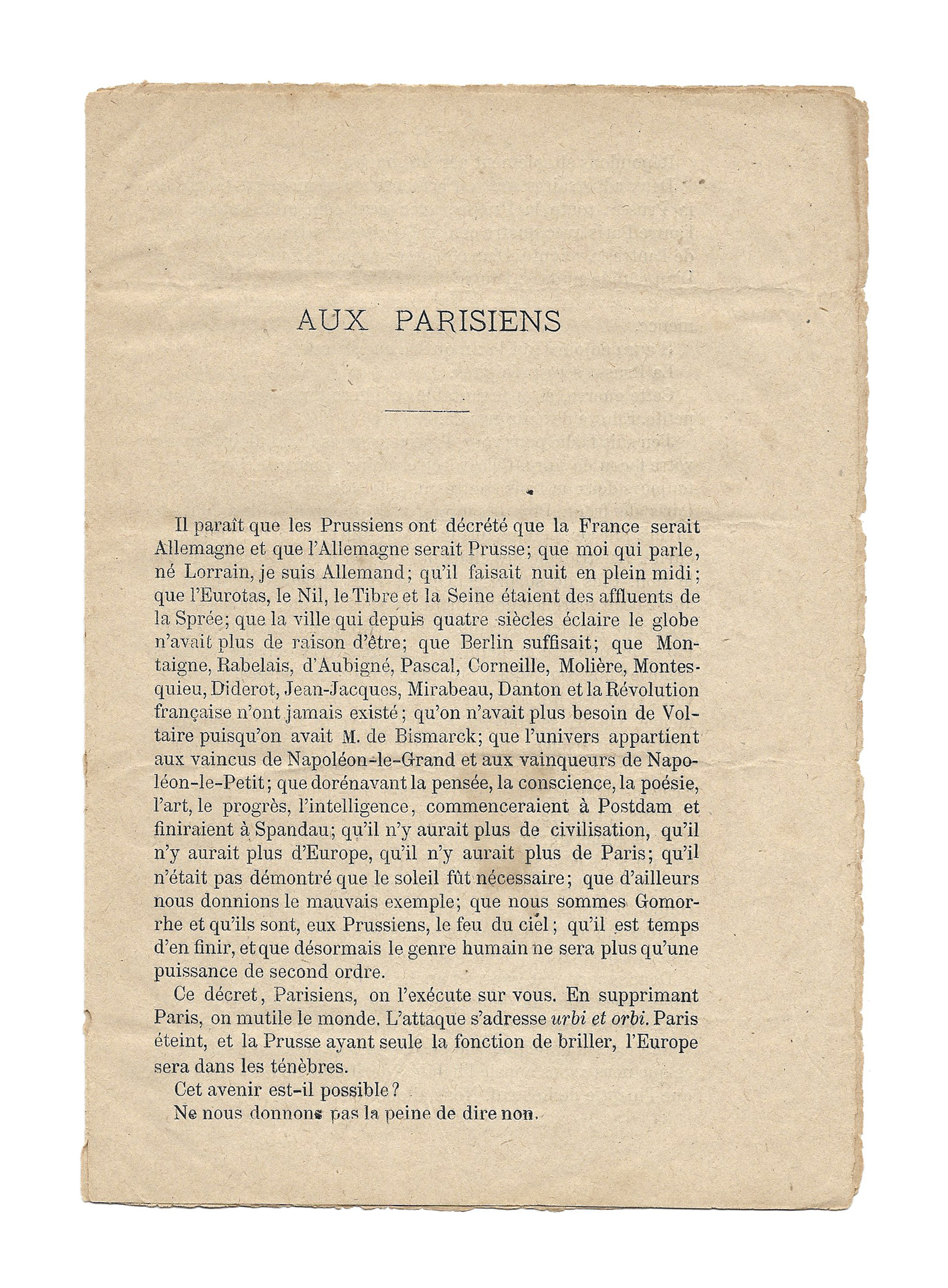 Original proof copies for Aux Allemands, Aux Français and Aux Parisiens