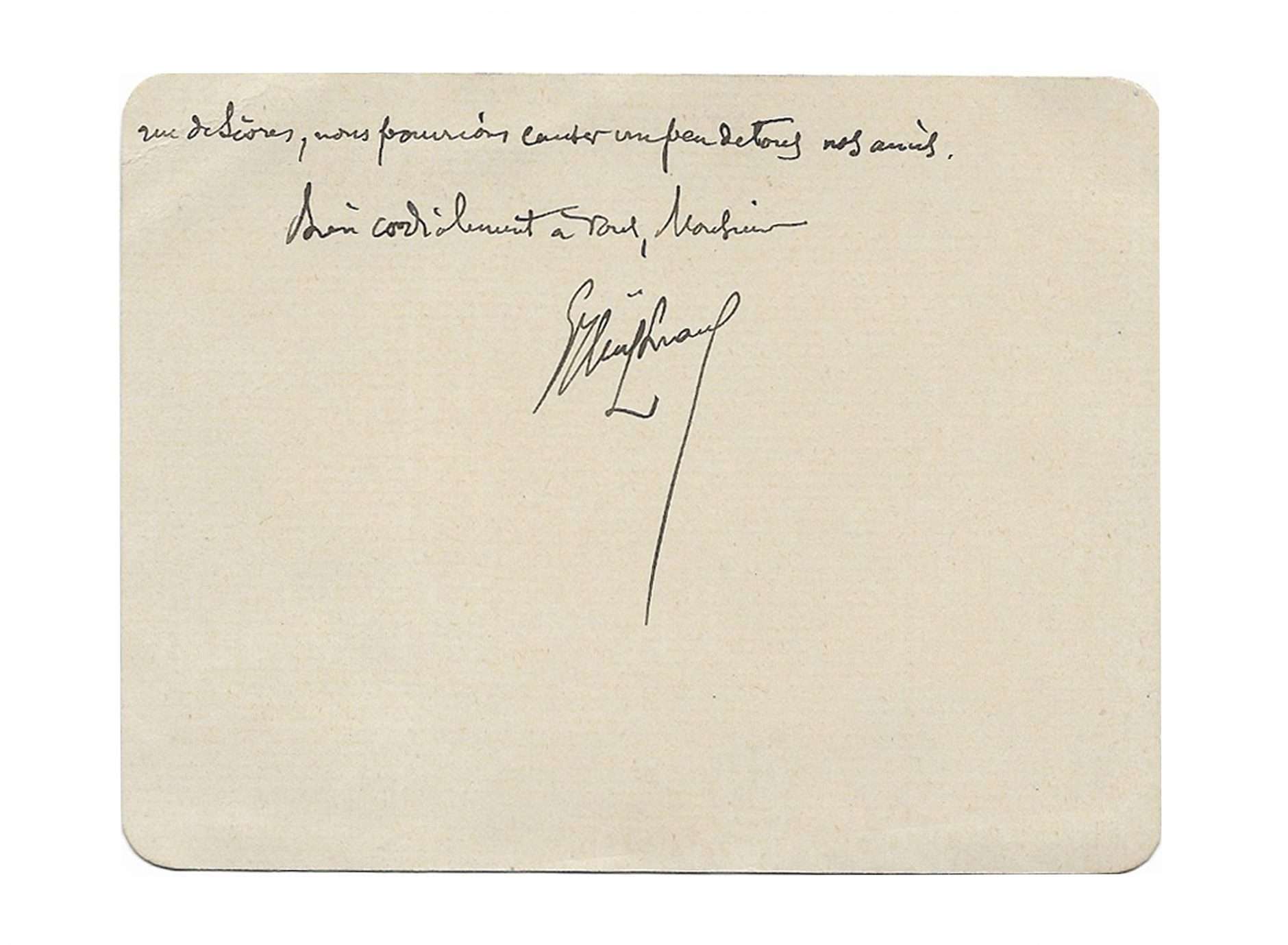 Autopgraph card signed « GHuÿsmans » to André Godard