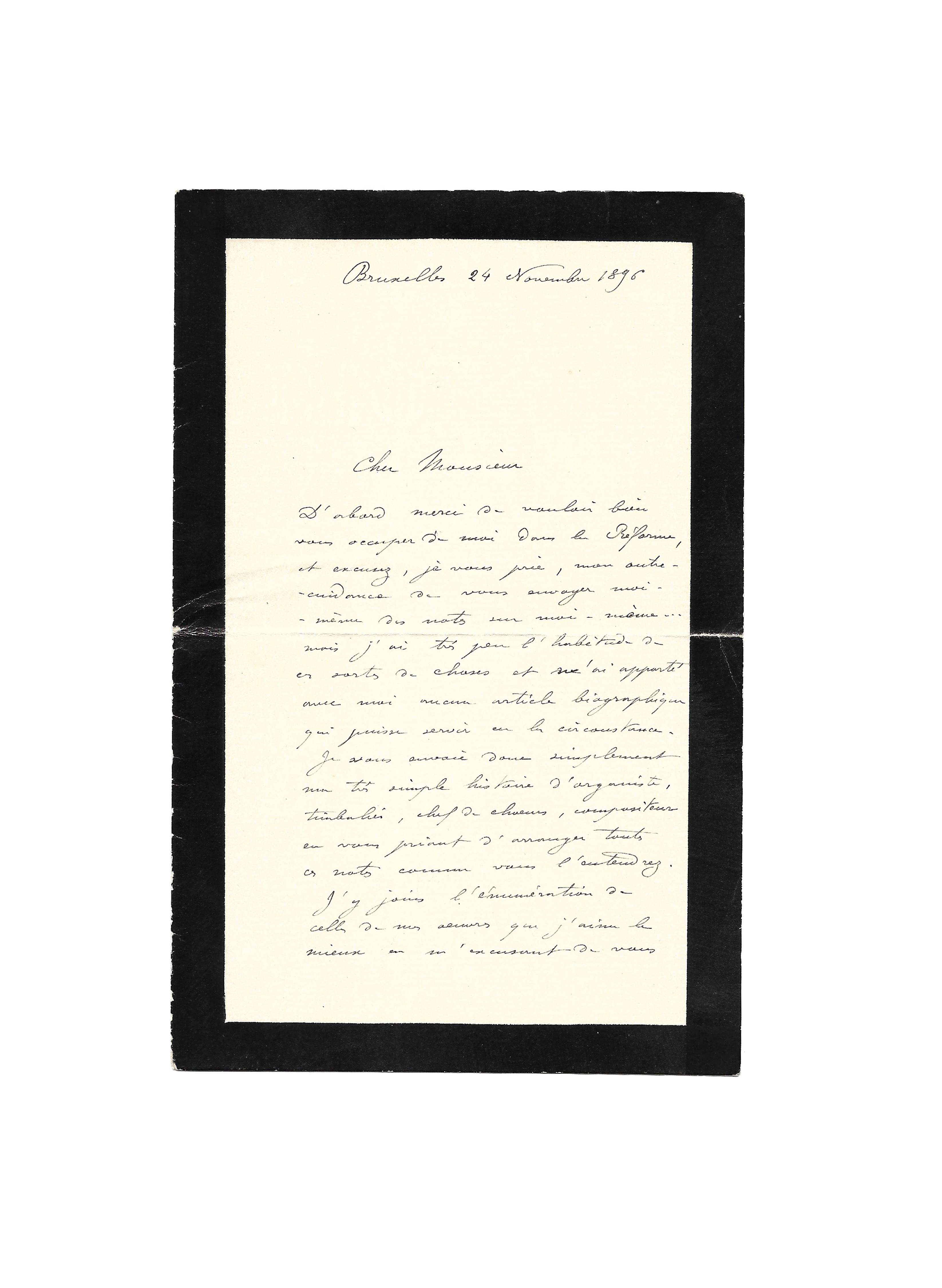 Bruxelles, 24th November 1896, 5 p. 1/2 small in-8, mourning paper