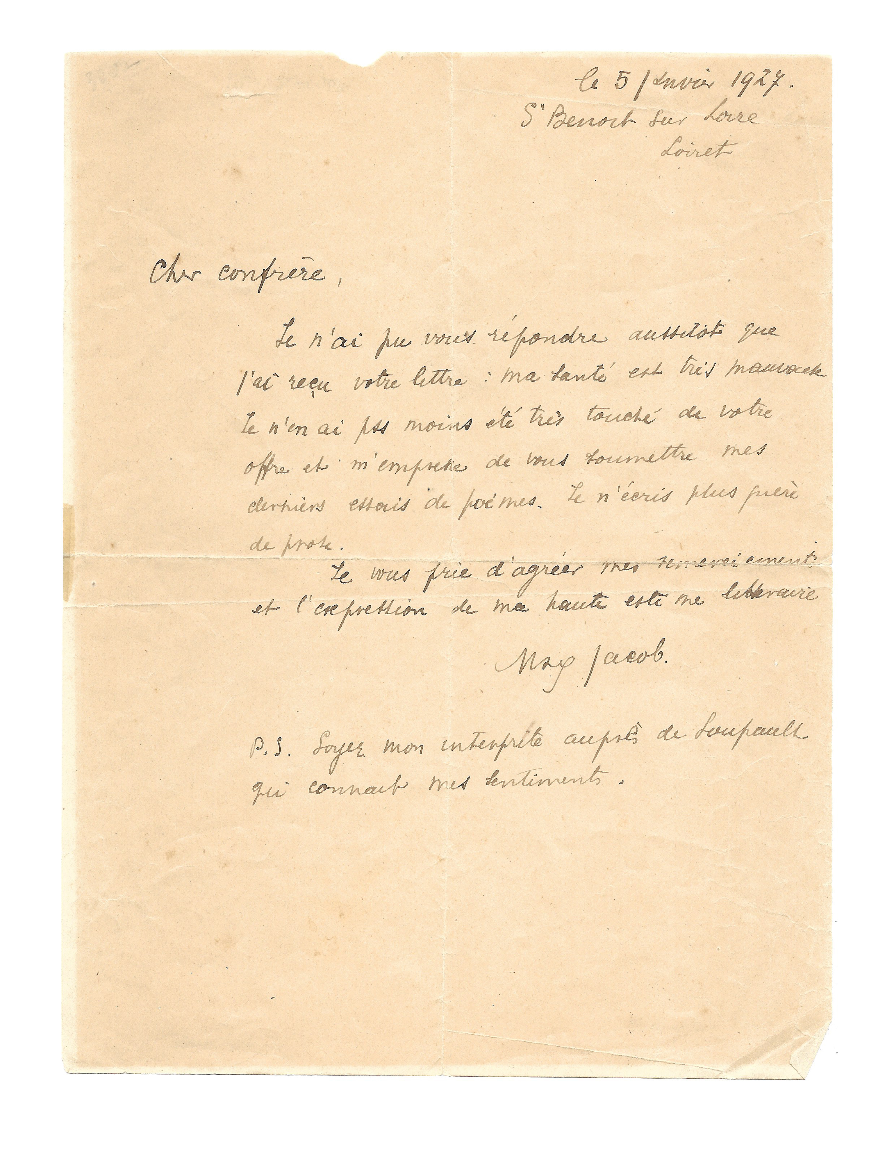 PS : Soyez mon interprète auprès de Soupault qui connait mes sentiments“