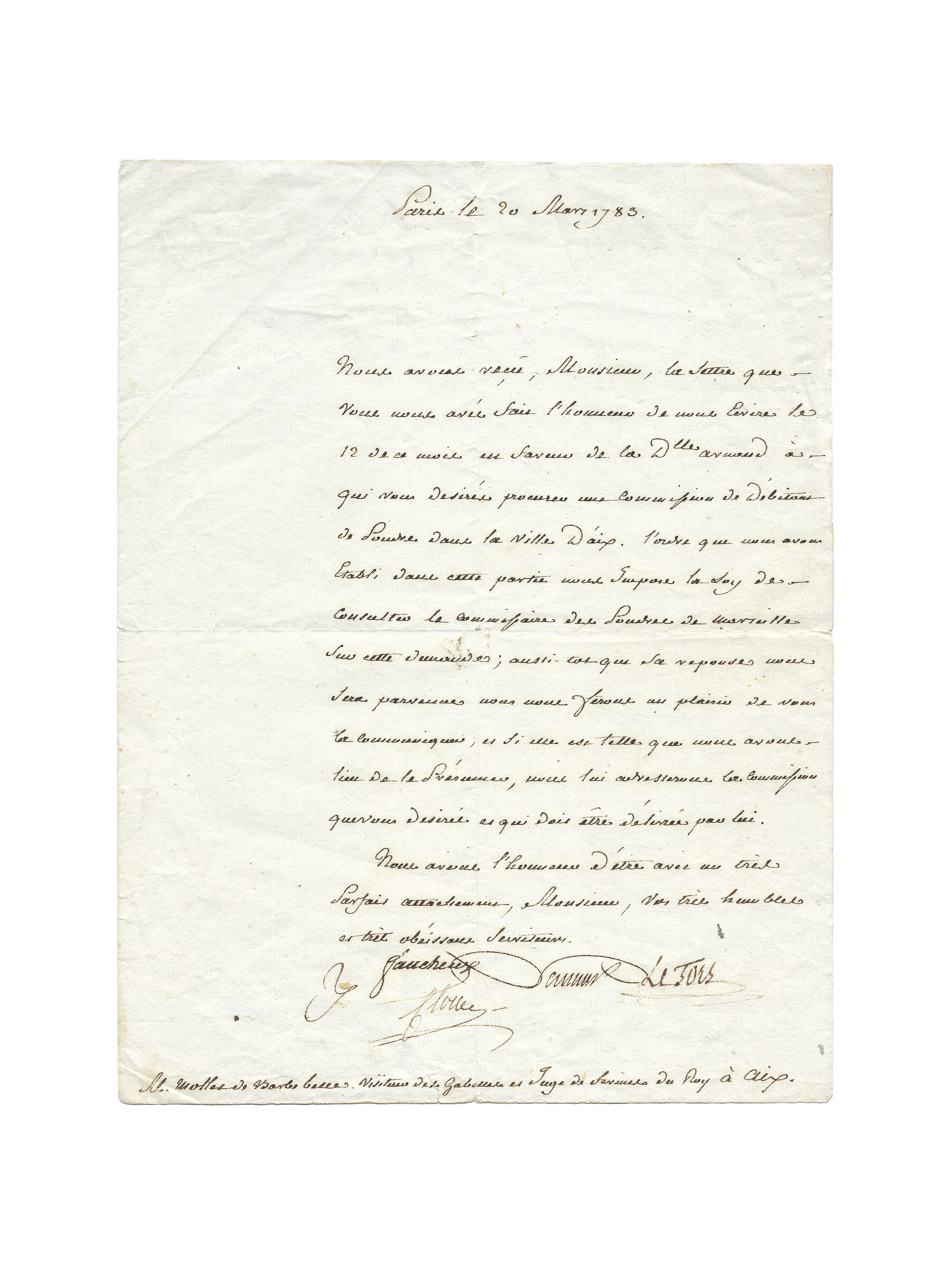 Paris, 20 March 1783, 1 page in-4 on double sheet, laid paper.