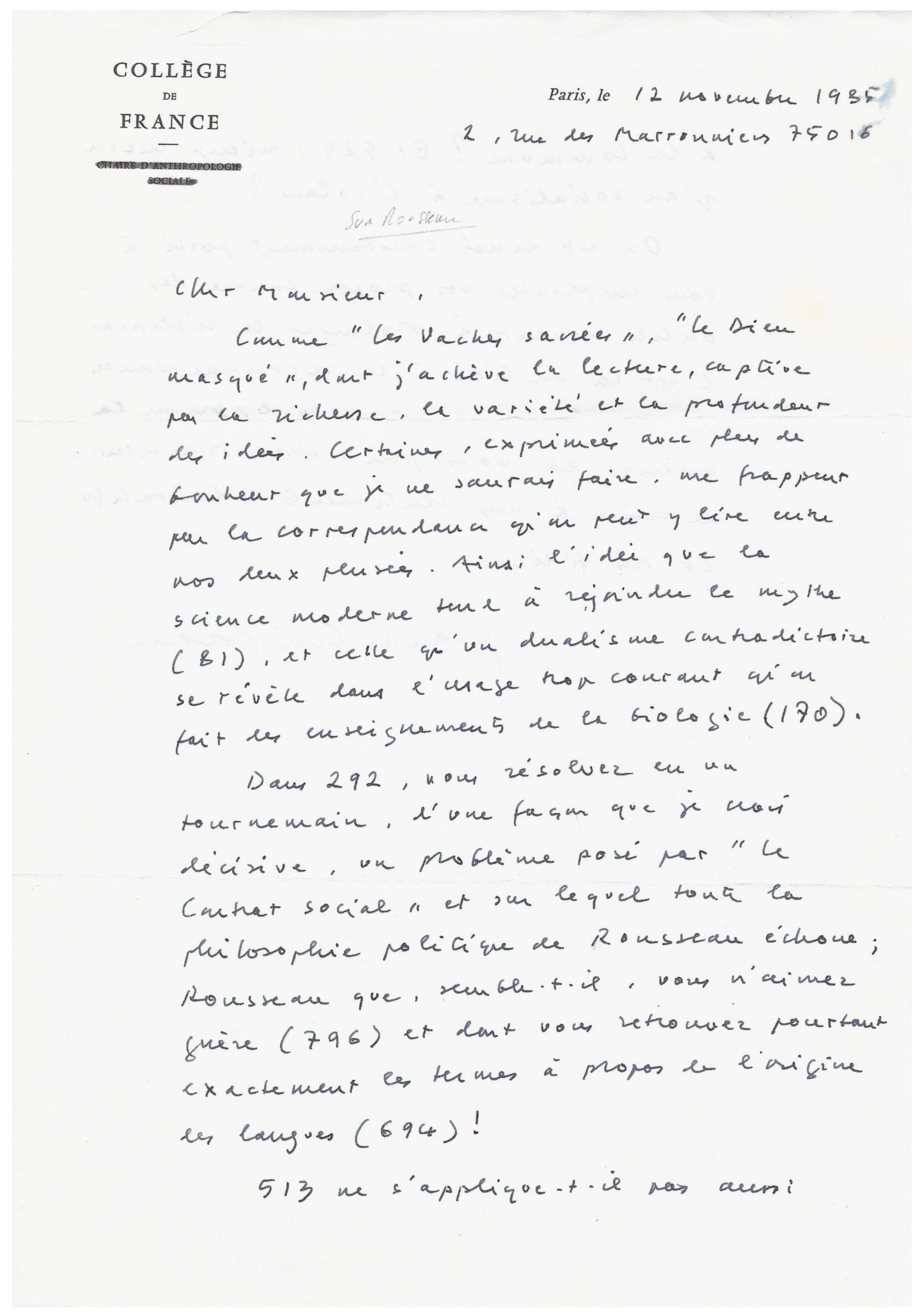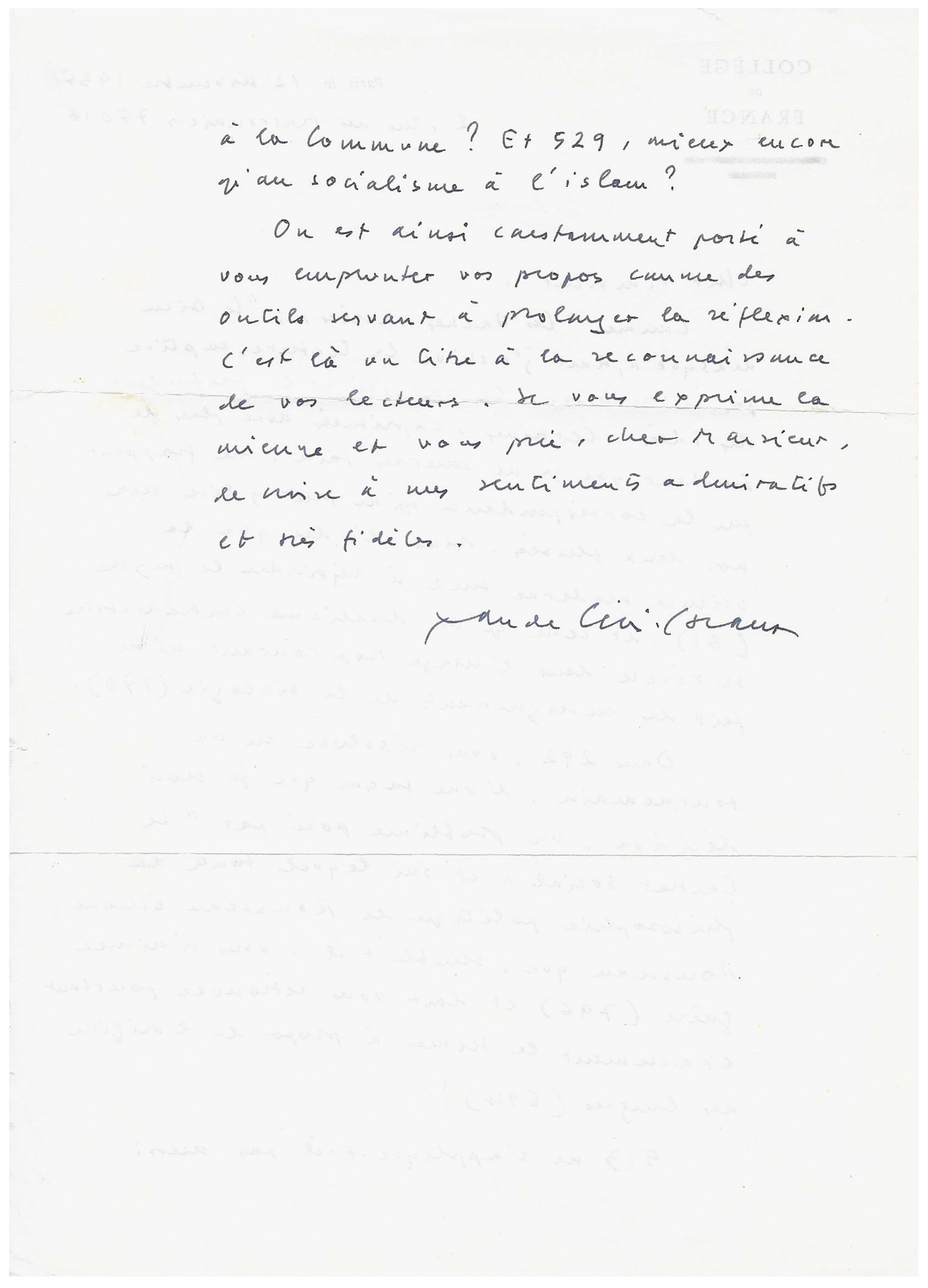 On Collège de France letterhead