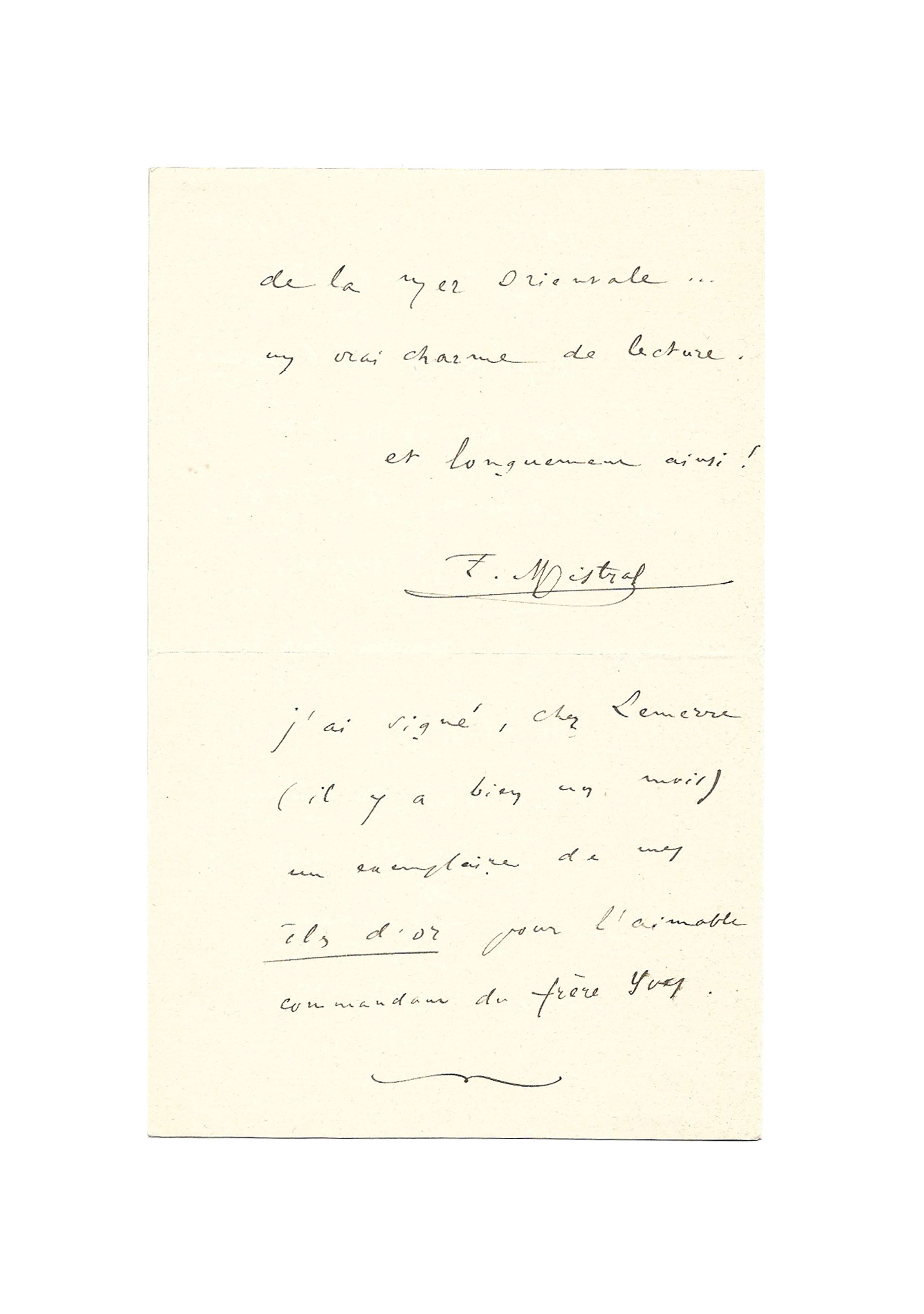We note that Mistral has fun here by naming his correspondent by three different names. At the end of the letter, he alludes to Loti’s novel: Mon frère Yves, a semi-autobiographical story published in 1883.