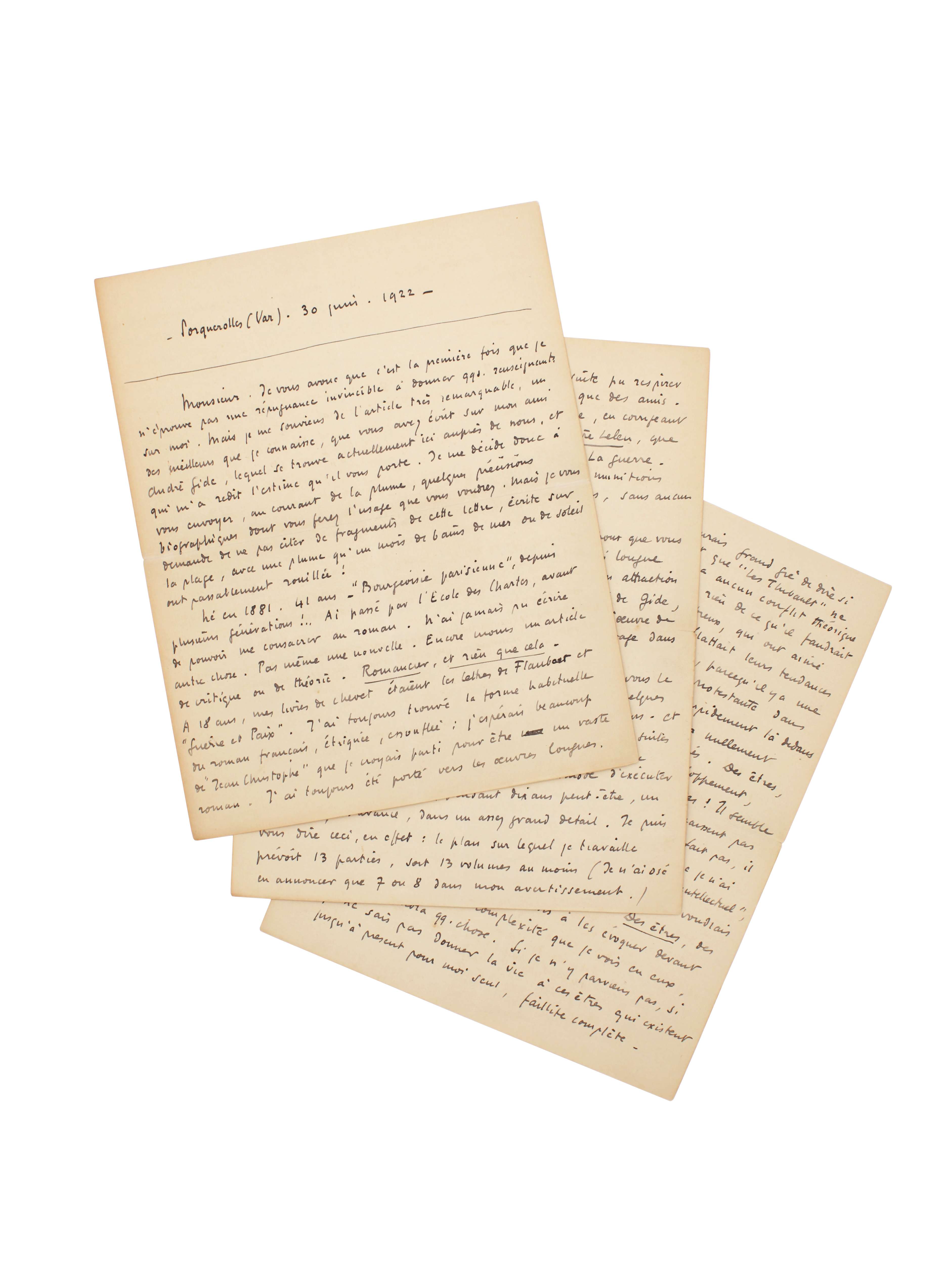 Porquerolles, 30th June 1922, 6 pp. in-8°