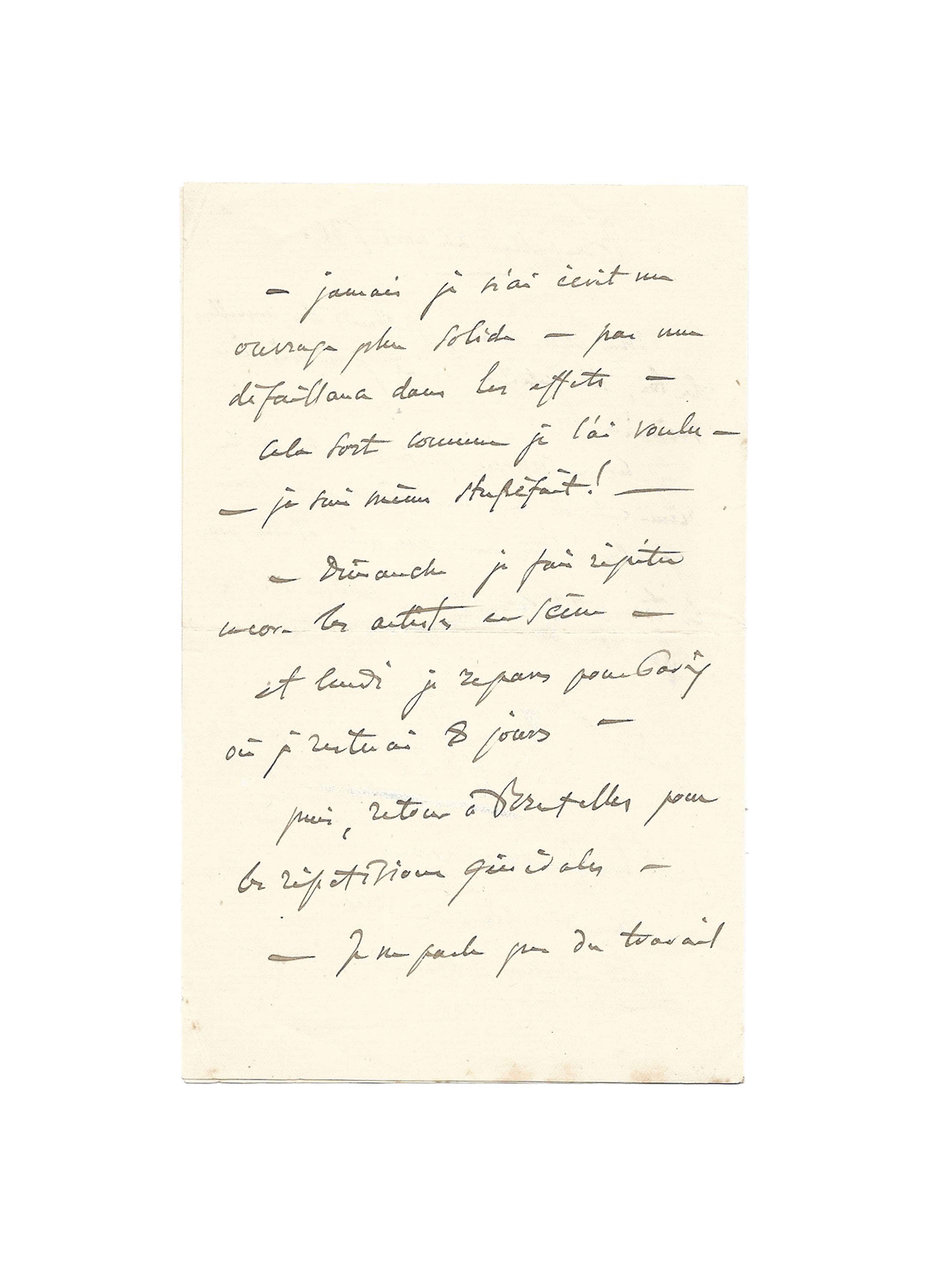 A beautiful letter from the composer, with exalted feelings, during the rehearsals of his opera Hérodiade