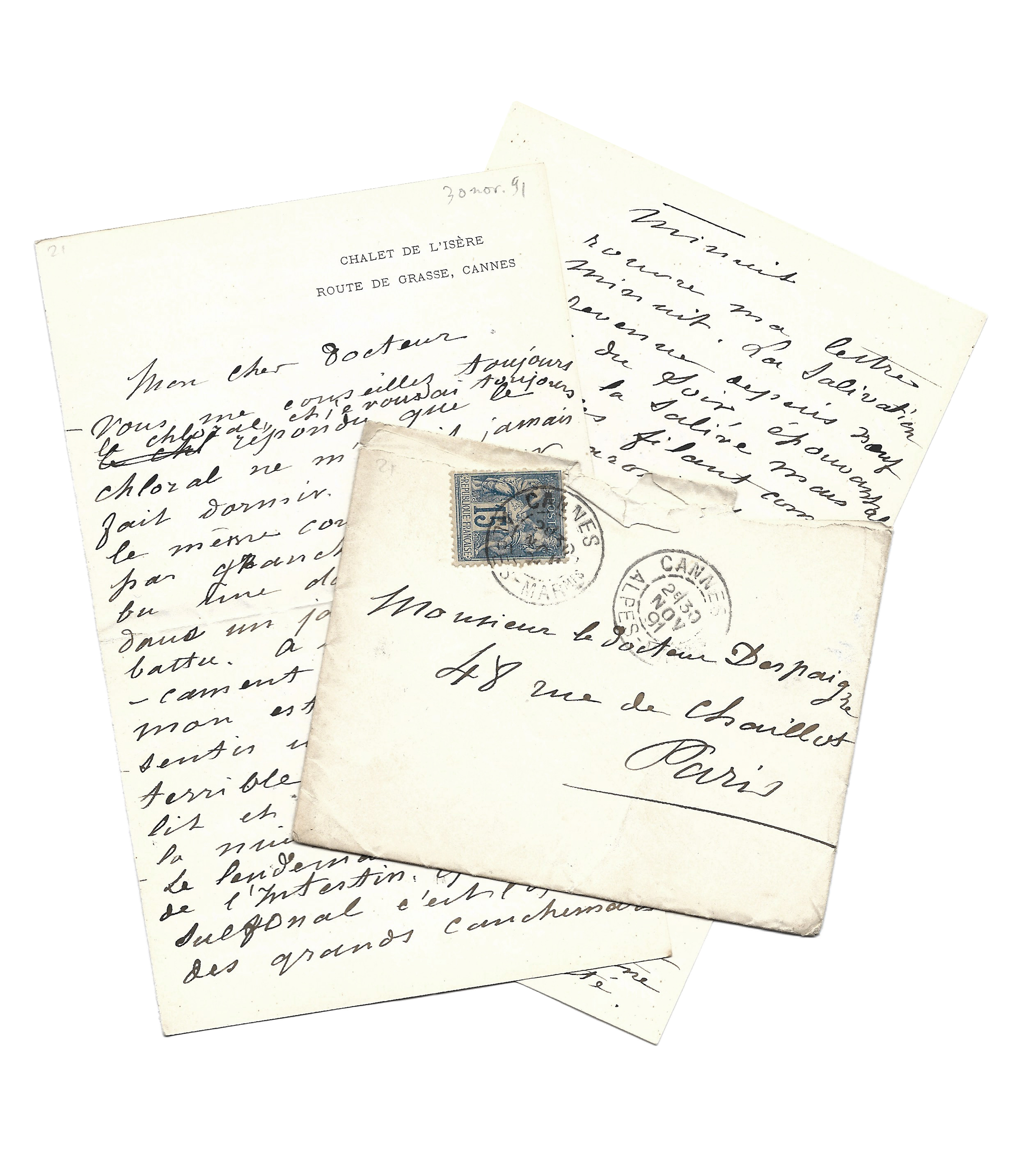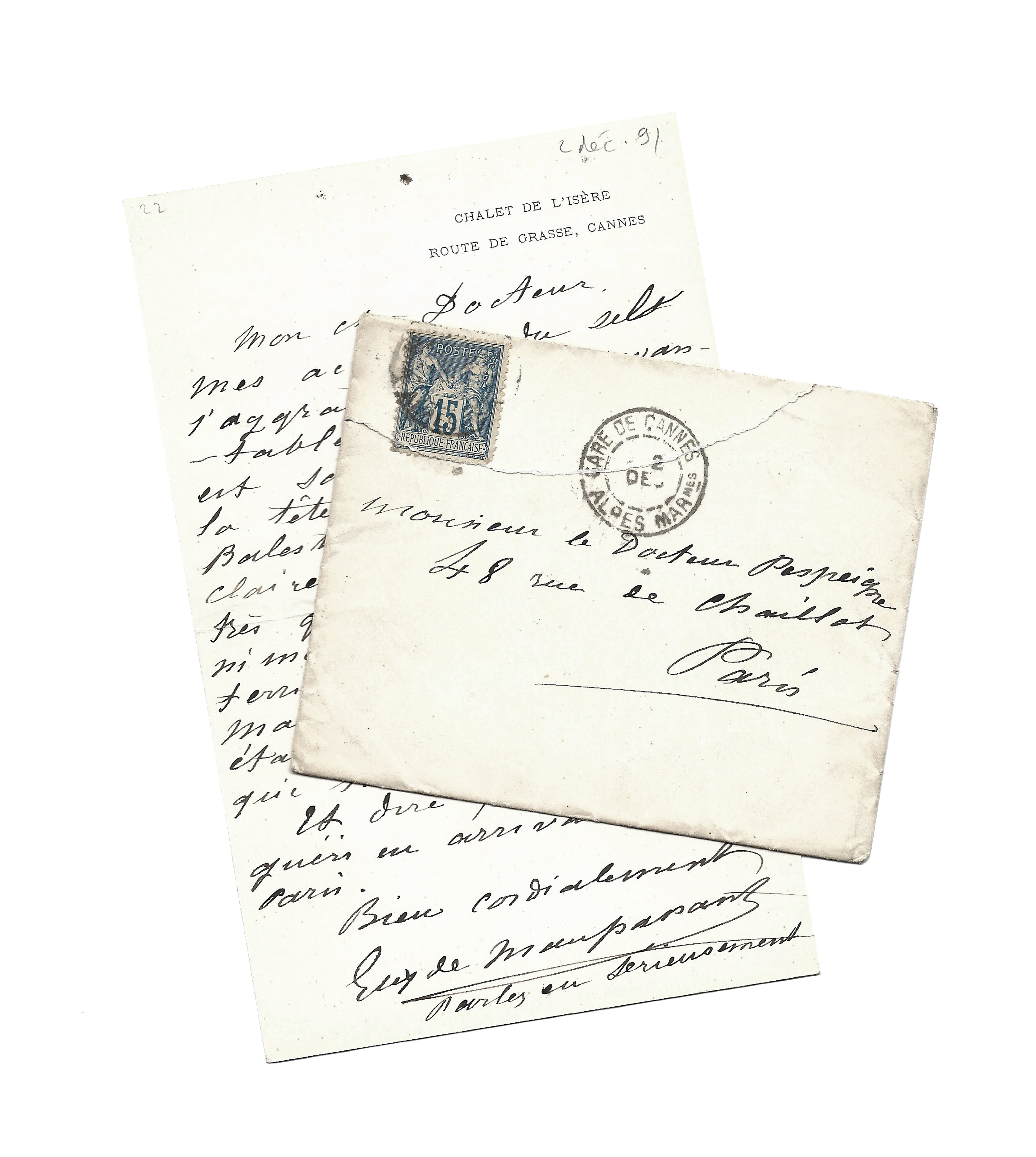 We present here three unpublished letters from Maupassant to Dr. Despaigne. These are among the last known autographs of the writer, only a few weeks before his internment at Dr. Blanche’s clinic, from where he will no longer write. Major testimonies on his physical and mental distress, these letters, unknown until 2023, thus complete a missing link of the last weeks of Maupassant “free”.