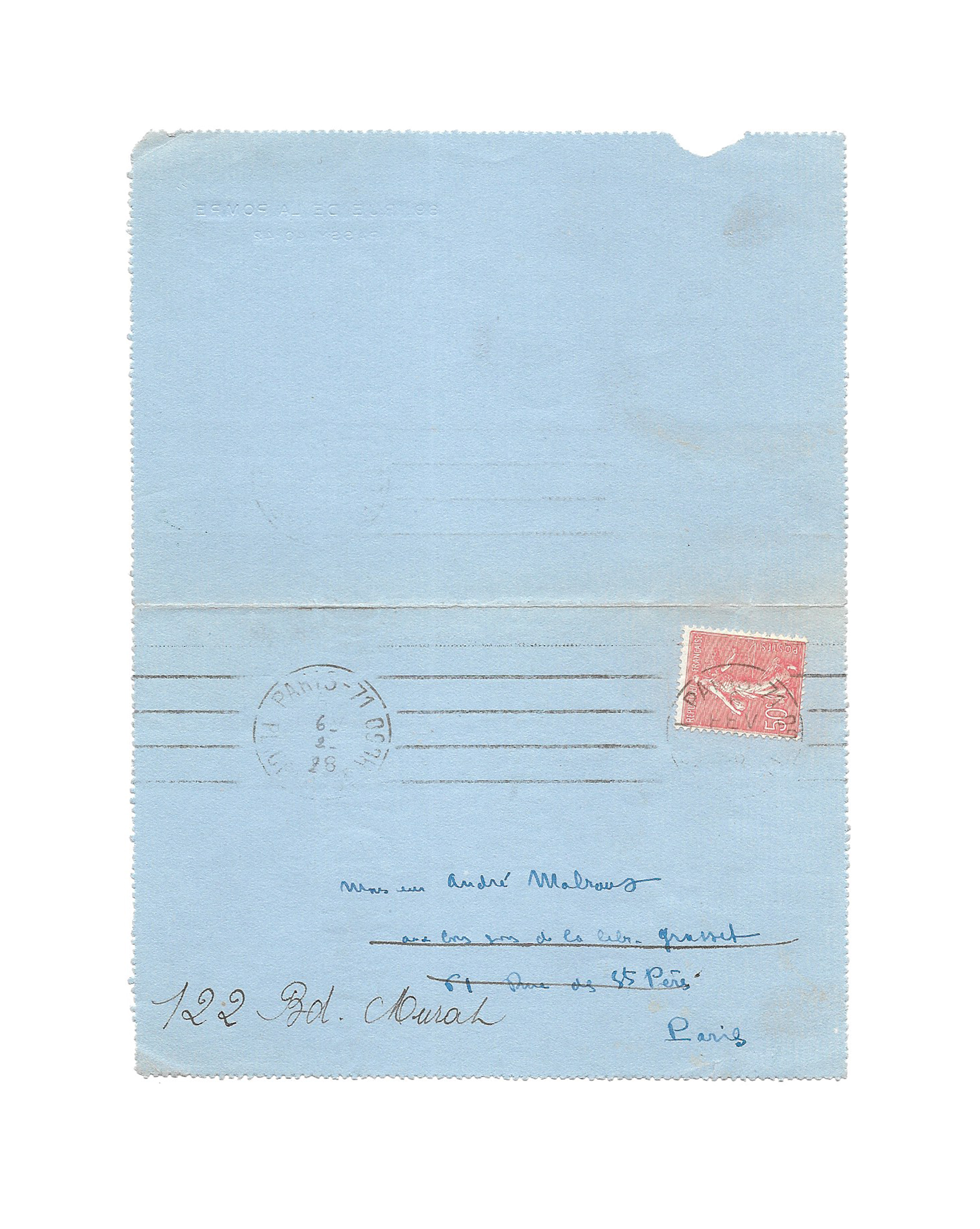Grasset n’aime pas votre roman [possibly Les Conquérants, which had just been published] et Paulhan l’admire beaucoup. C’est assez bon signe.