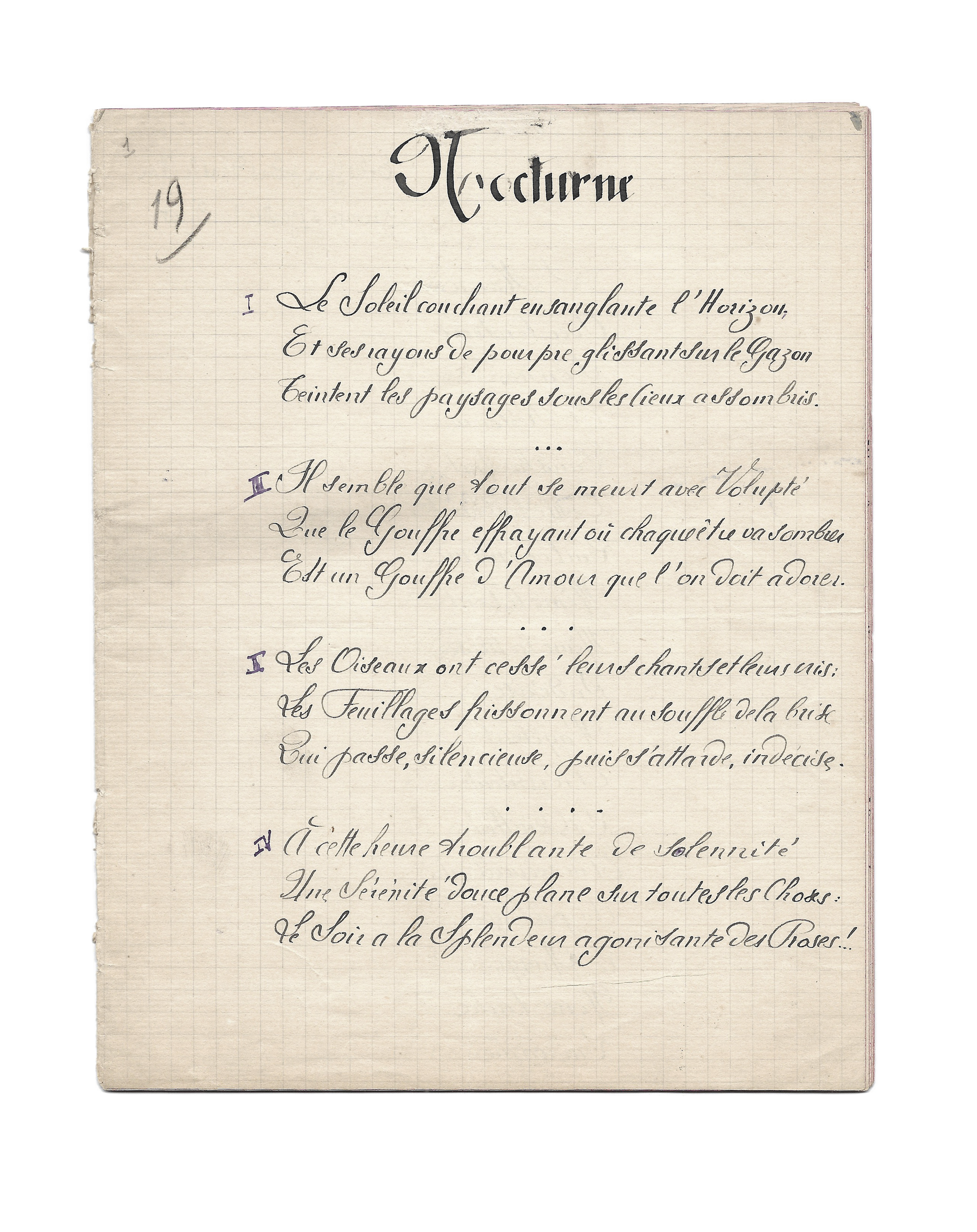 Nocturne (4 tercets in alexandrins followed by 54 verses) :