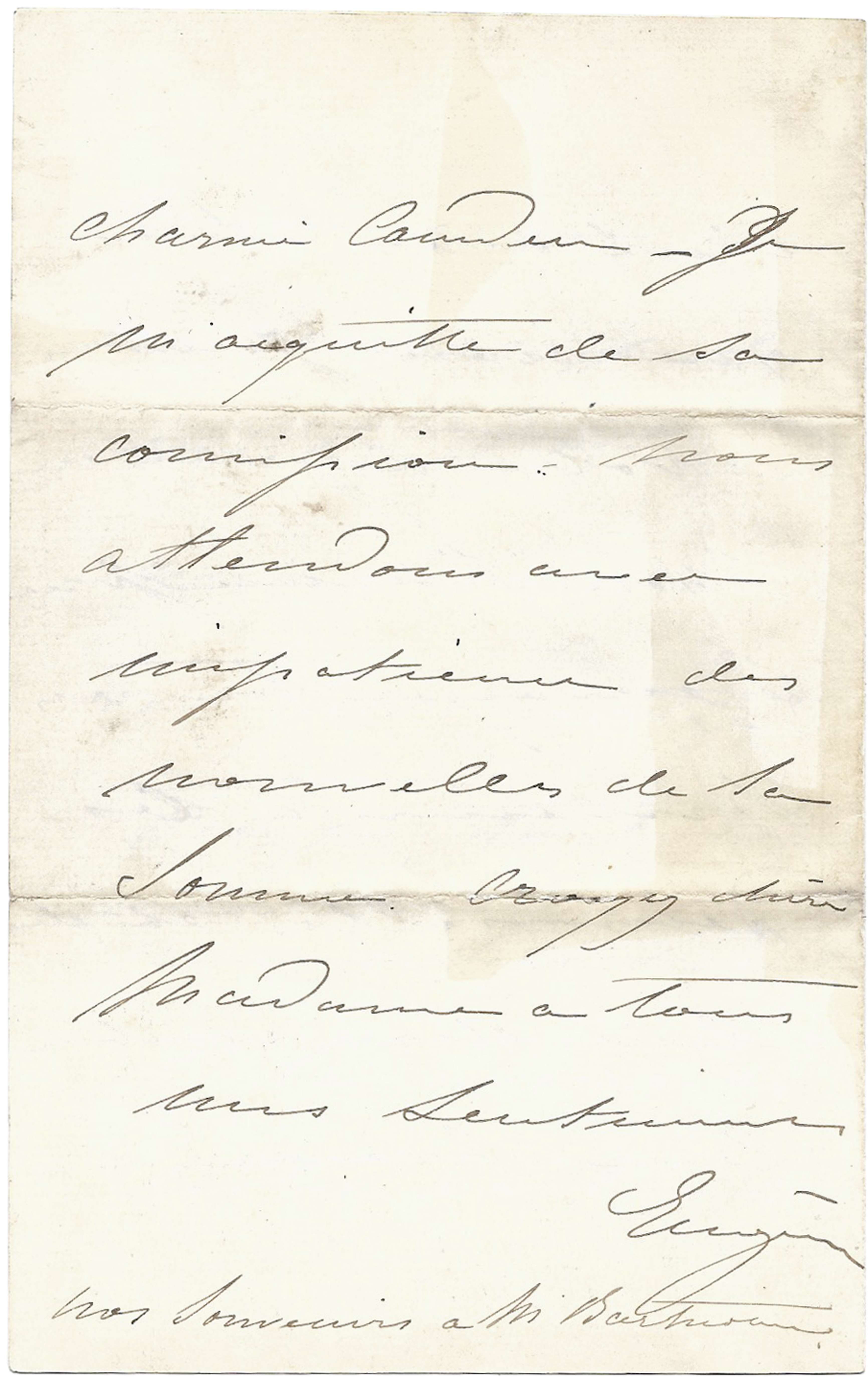 Autograph letter signed « Eugénie » to Marie-Thérèse Bartholoni