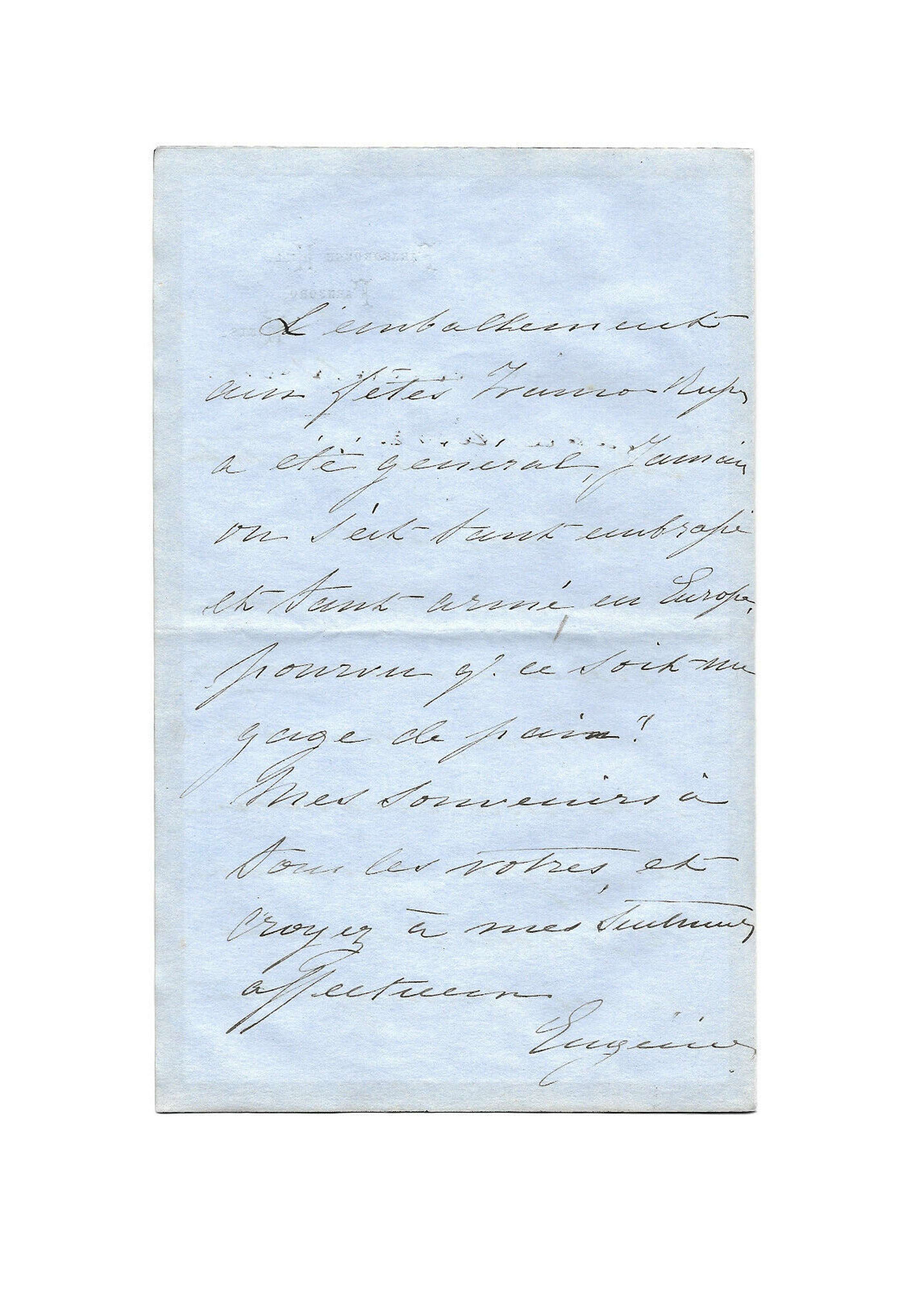 Autograph letter signed « Eugénie » to Marie-Thérèse Bartholoni
