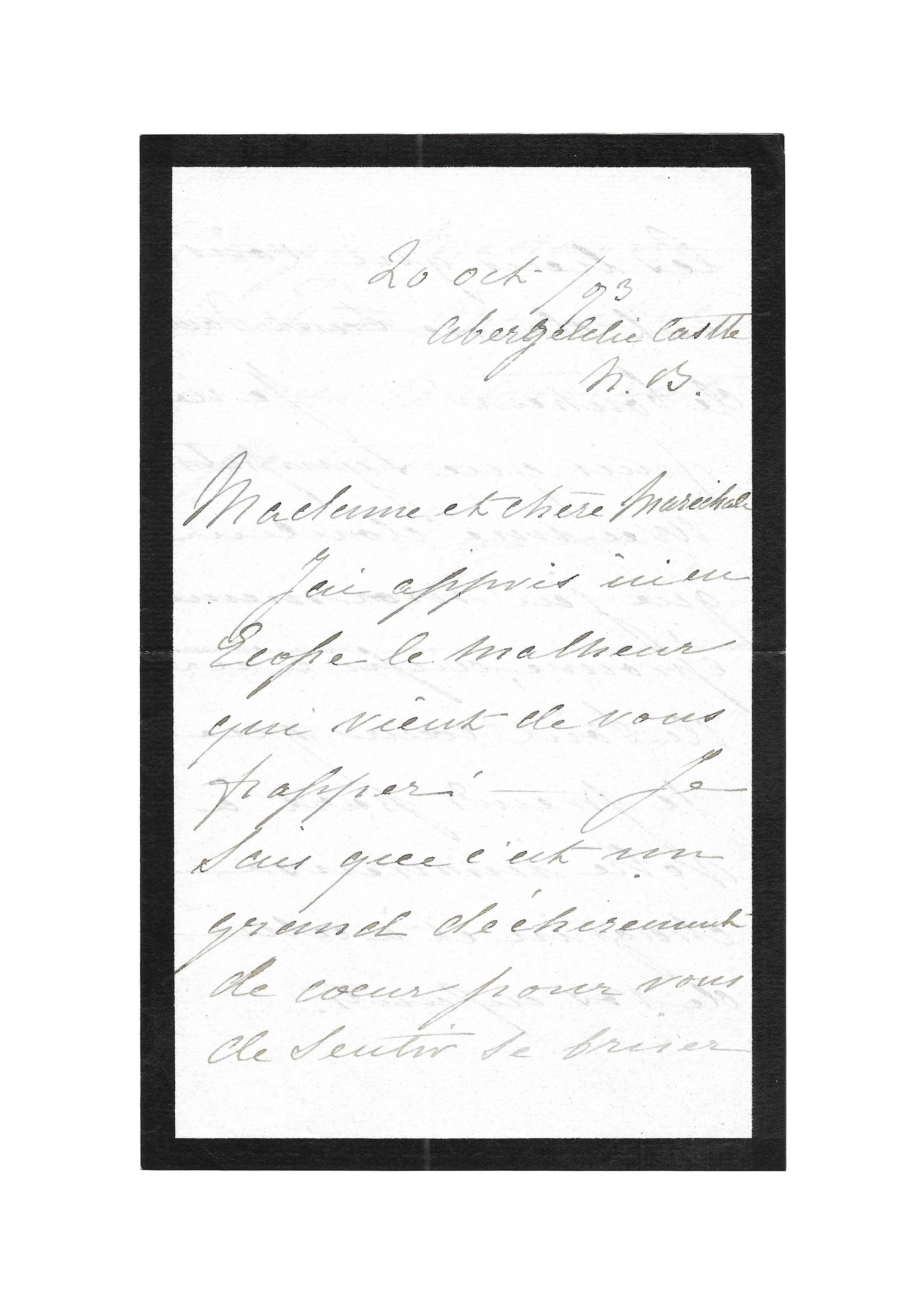 Abergeldie Castle, 20th October 1893, 2 p. 1/2 in-8 on mourning paper
