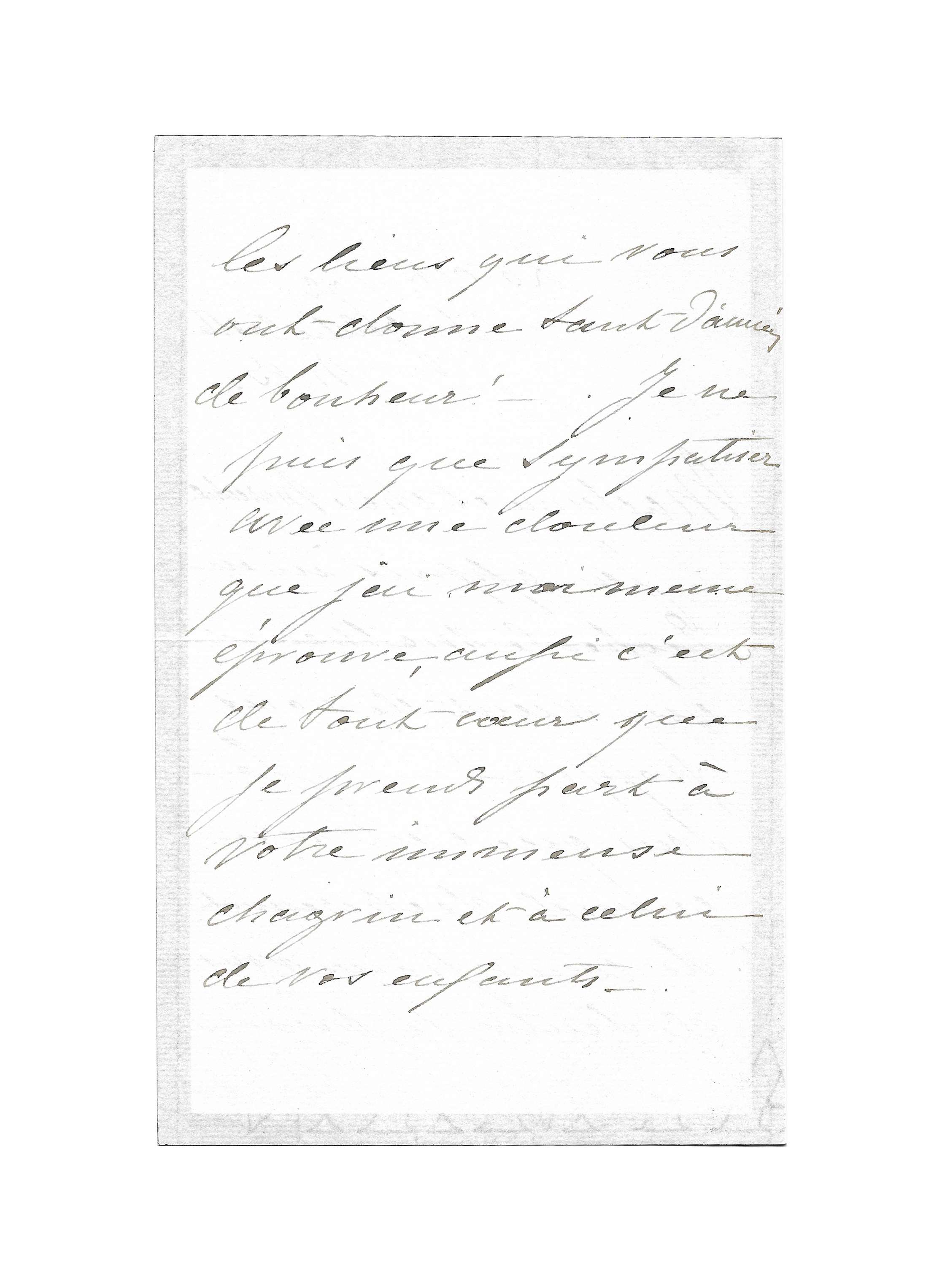 Je ne puis que sympathiser avec une douleur que j’ai moi-même éprouvé ; aussi c’est de tout cœur que je prends part à votre immense chagrin et à celui de vos enfants.