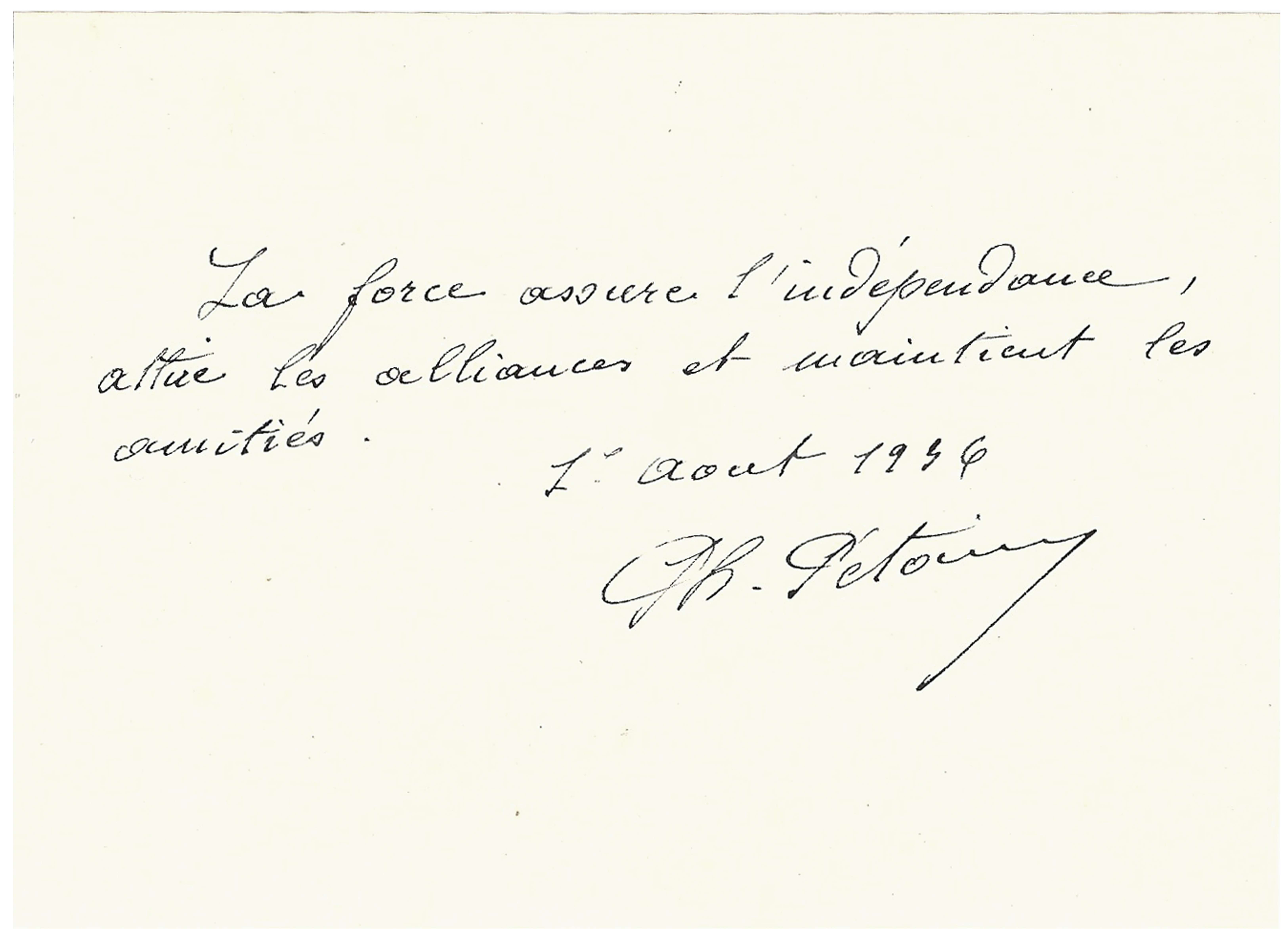 Autograph quote signed « Ph. Pétain »