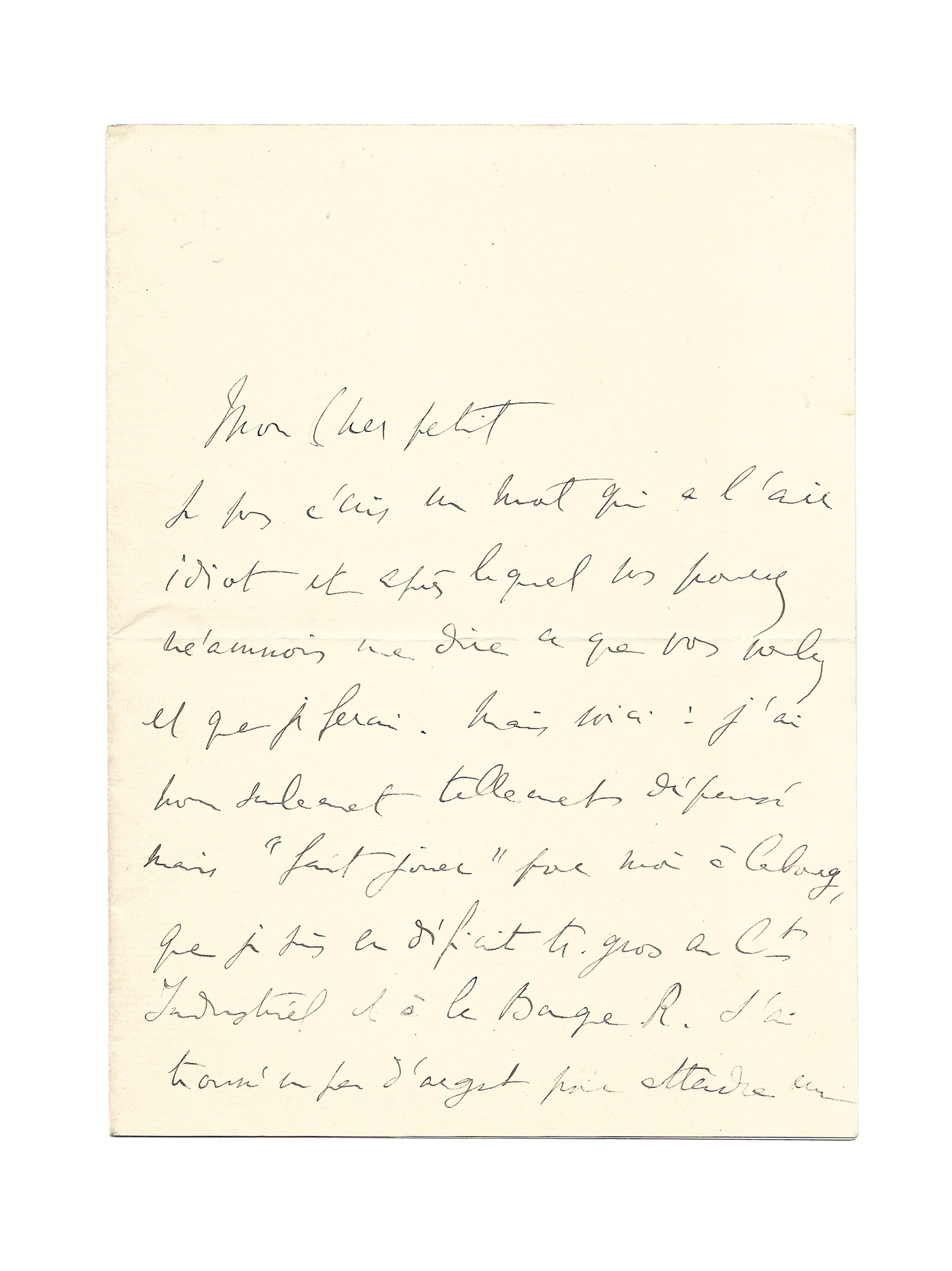 Je vous écris un mot qui a l’air idiot et après lequel vous pourrez néanmoins me dire ce que vous voulez et que je ferai. Mais voici : j’ai non seulement tellement dépensé mais “fait jouer” pour moi à Cabourg, que je suis en déficit très gros au Crédit Industriel et à la Banque R.